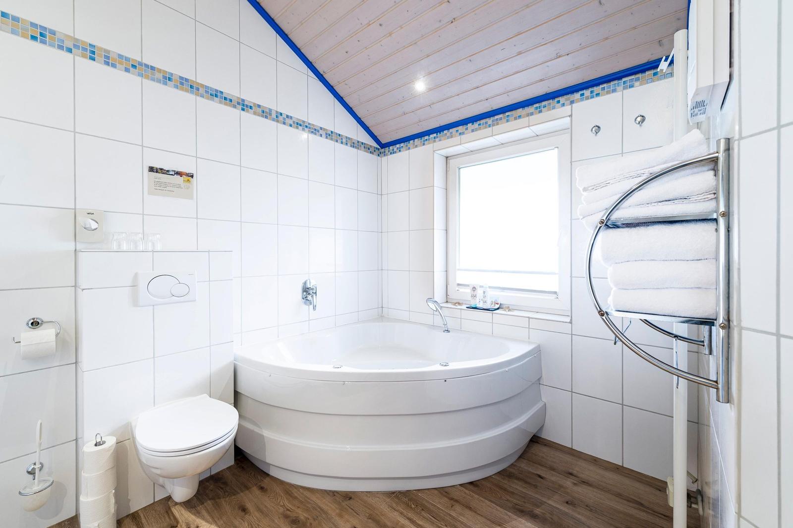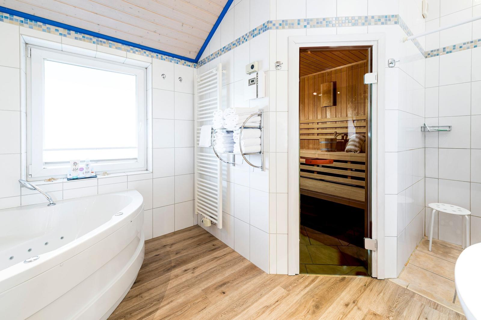 In der charmanten Ferienwohnung erwartet Gäste eine harmonische Kombination aus Komfort und Funktionalität. Sie verfügt über drei sonnige Schlafzimmer, die mit zwei Doppelbetten und einem Kinderbett ausgestattet sind, sowie zwei moderne Badezimmer, eines mit bodengleicher Dusche und das andere mit Badewanne. Die offene Küche ist ein Highlight und bietet eine umfassende Ausstattung, darunter einen Geschirrspüler, Elektro- und Gasherd, Backofen sowie eine Kaffeemaschine und weitere Geräte.