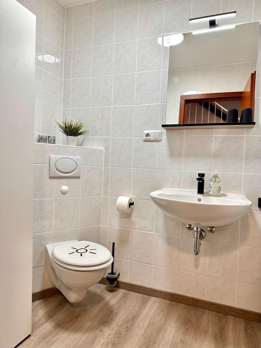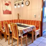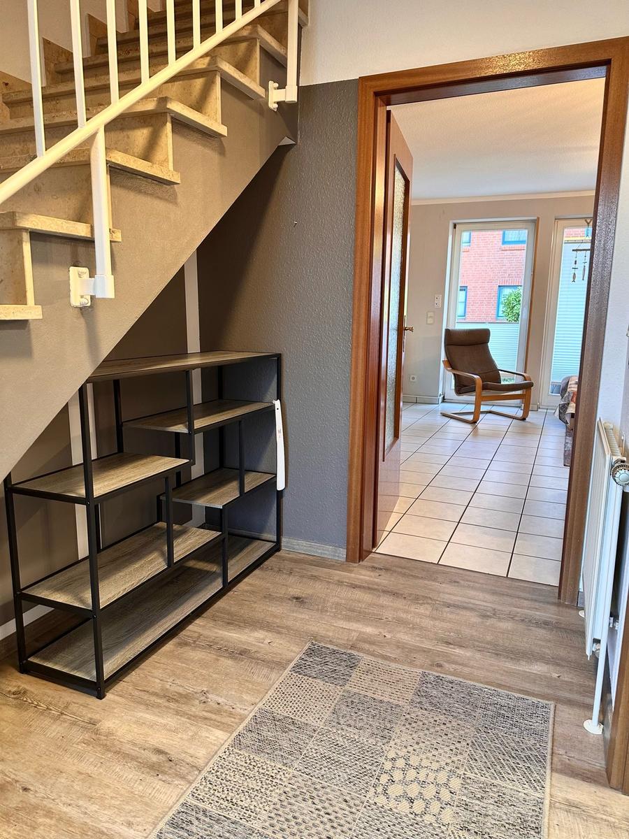 Die Ferienwohnung bietet ein ideales Zuhause für entspannte Urlaubstage. Mit drei Schlafzimmern, zwei Doppelbetten und zwei Einzelbetten bietet sie ausreichend Platz für Familien oder Gruppen. Das moderne Badezimmer und das Gäste-WC sind mit einem Duschbad und einem Haartrockner ausgestattet, um den Komfort zu erhöhen. Die vollausgestattete Küche verfügt über einen Elektro-/Gasherd, einen Backofen, eine Mikrowelle, einen Geschirrspüler und viele weitere Geräte wie eine Kaffeemaschine und einen Wasserkocher. Ein großer Esstisch lädt zum geselligen Beisammensein ein. Für Unterhaltung sorgt die HiFi-Anlage und der TV. Die Wohnung ist allergikergeeignet und verfügt über WLAN. Ein Parkplatz steht zur Verfügung. Zur weiteren Ausstattung gehören ein Bügeleisen, Staubsauger und Wäscheständer. Ein Sessel, Spiegel und Garderobe runden das Angebot ab. Der Sonnenschirm sorgt für zusätzliche Erholung im Freien.