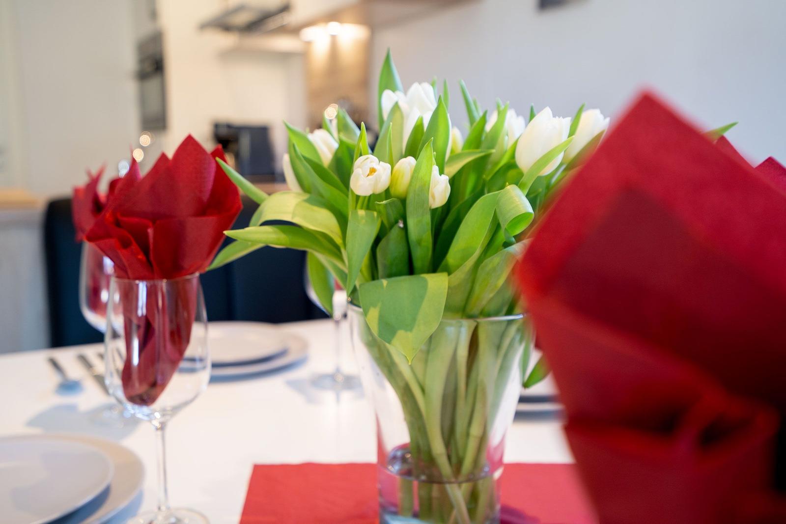 Die moderne Ferienwohnung bietet eine komfortable und allergikerfreundliche Unterkunft mit zwei einladenden Schlafzimmern, in denen ein Doppelbett für erholsamen Schlaf sorgt. Sie verfügt über ein stilvolles Badezimmer mit einem Fenster und einer bodengleichen Dusche, die den Komfort unterstreicht. Die offene Küche ist mit einem Elektro-/Gasherd, Geschirrspüler, Mikrowelle, Kaffeemaschine, Wasserkocher und einem Mixer vollständig ausgestattet. Ein Esstisch lädt zum gemeinsamen Essen ein. Im Wohnbereich mit Sofa und TV kann man entspannen. WLAN sorgt für eine durchgehende Internetverbindung. Praktische Annehmlichkeiten wie eine Waschmaschine, ein Wäschetrockner und ein Staubsauger sind ebenfalls vorhanden. Der Parkplatz direkt vor der Tür und die Startersets für Reinigungsmittel und Gewürze runden das Angebot ab. Fliegengitter bieten zusätzlichen Komfort, während der Rauchmelder für Sicherheit sorgt.