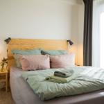 Das Haus verfügt zusätzlich über 4 Appartements im Erdgeschoss, sodass bis zu 22 Personen übernachten können. Jedes Appartement ist mit eigener Küche, eigenem Duschbad und einer eigenen Holzterrasse ausgestattet. Zusätzlich besteht je nach Saison die Möglichkeit, das Haus durch weitere Zimmer in den benachbarten Häusern zu erweitern.