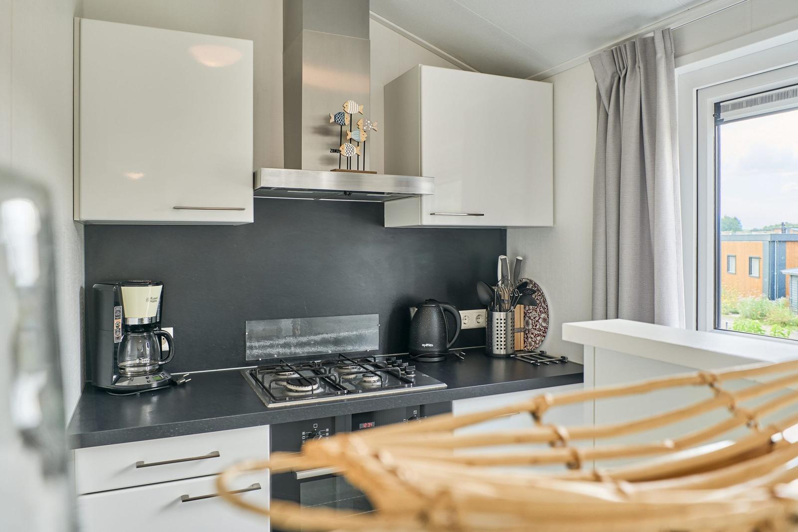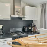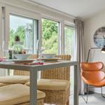 Die offene Küche ist vollständig ausgestattet und lässt keine Wünsche offen: Ein Geschirrspüler, Elektro-/Gasherd, Backofen, Kühlschrank sowie eine Kaffeemaschine garantieren eine angenehme Zubereitung von Mahlzeiten. Der Esstisch lädt zu gemeinsamen Momenten ein.