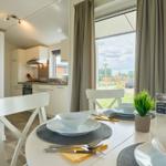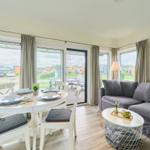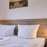 Die Ferienwohnung bietet eine stilvolle und komfortable Ausstattung, ideal für einen erholsamen Aufenthalt. Sie verfügt über zwei Schlafzimmer, eines mit einem Doppelbett und eines mit zwei Einzelbetten, und ist allergikergeeignet. Die offene Küche ist modern eingerichtet und enthält einen Elektro-/Gasherd, Backofen, Geschirrspüler, Kühlschrank mit Gefriermöglichkeit, Kaffeemaschine, Toaster und Wasserkocher. Ein Esstisch lädt zum gemeinsamen Speisen ein, während das Duschbad mit einem Spiegel ausgestattet ist. Im Wohnzimmer gibt es ein gemütliches Sofa und einen TV für entspannte Abende. Internet mit WLAN steht zur Verfügung. Praktische Annehmlichkeiten wie Geschirrtücher, Geschirr und Besteck runden das Angebot ab. Die Wohnung ist zudem mit einem Rauchmelder und einem Staubsauger ausgestattet, um den Gästen einen angenehmen Aufenthalt zu gewährleisten. Eine Garderobe sorgt für zusätzlichen Komfort.