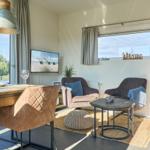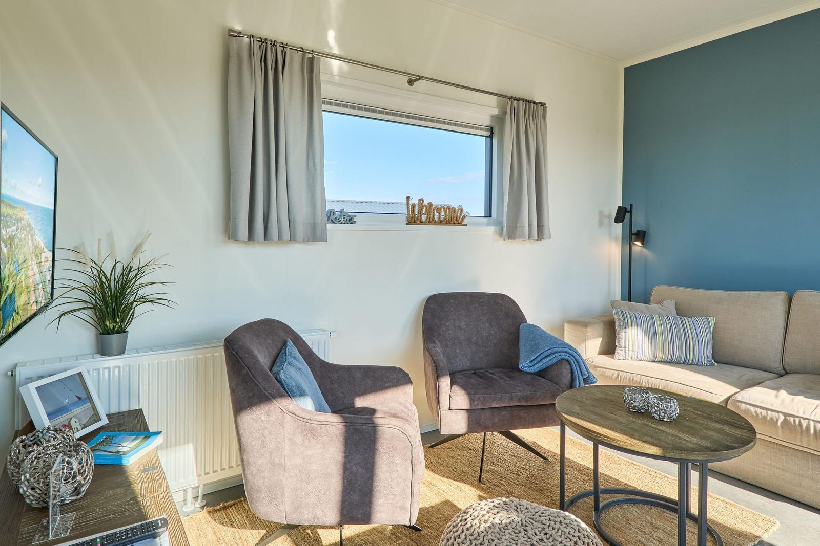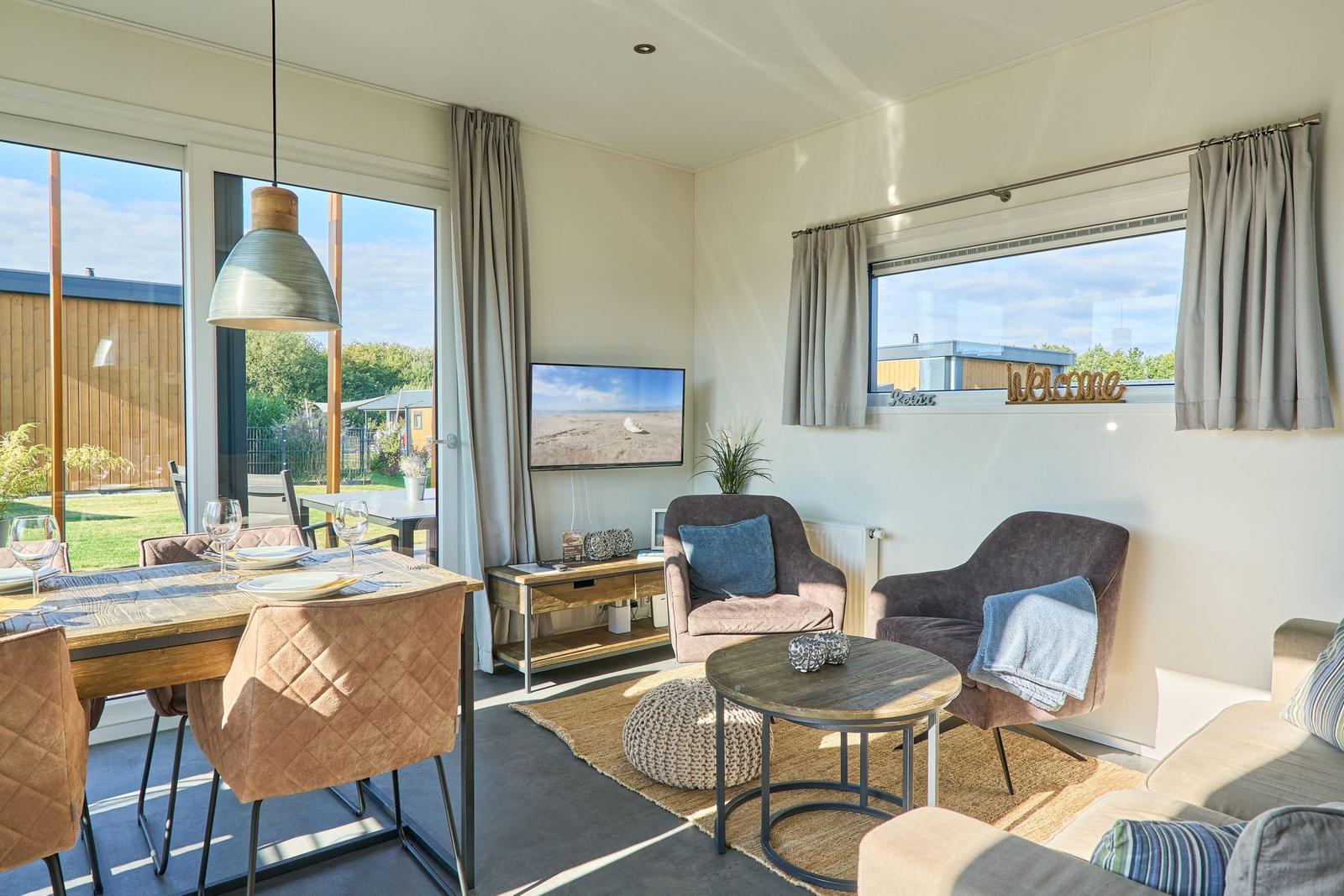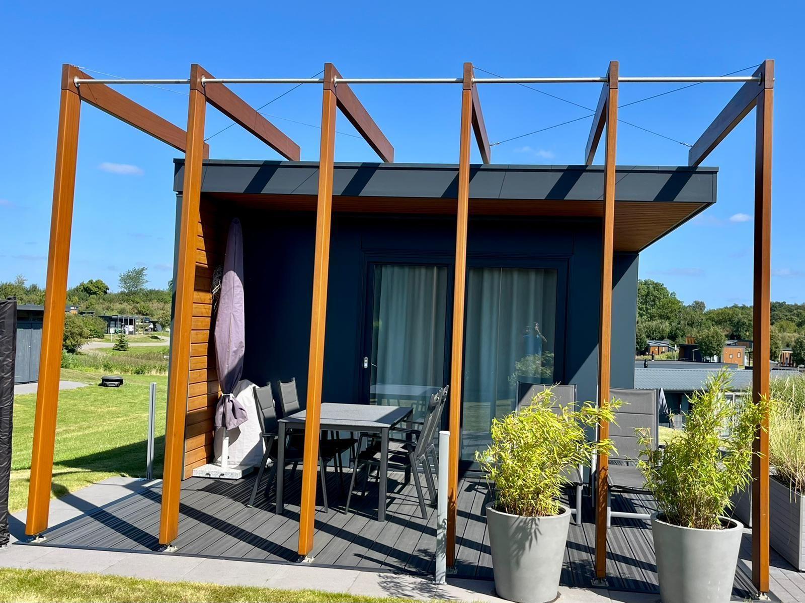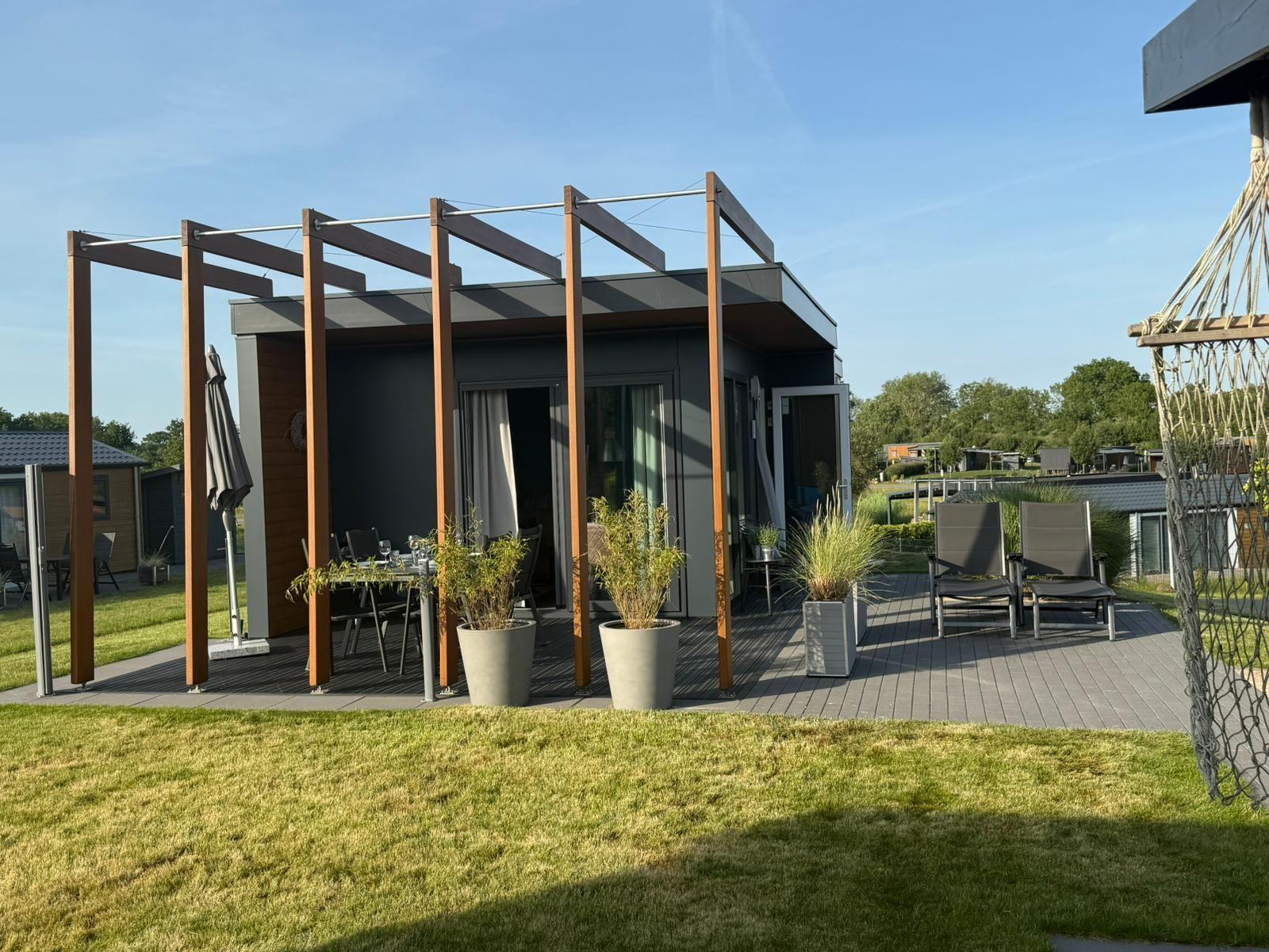 Das Chalet Relax-Inn in der Ferienanlage Seeparx Süsel bietet auf 40 m² modernen Komfort für bis zu vier Personen. Die offene Küche, harmonisch ins Wohnzimmer integriert, ist umfassend ausgestattet und verfügt über eine Spülmaschine, einen Gasbackofen sowie weitere Geräte wie Kühlschrank mit Gefrierfach, Wasserkocher, Toaster, Kaffeemaschine und Mikrowelle. Zwei separate Schlafzimmer mit Vinylbodenbelag garantieren einen erholsamen Schlaf. Das Tageslichtbadezimmer ist mit bodengleicher Dusche, WC, Waschbecken und Handtüchern ausgestattet. Für zusätzlichen Komfort sorgen Klimaanlage, WLAN und ein Flachbildfernseher. Gemeinschaftlich nutzbar sind Waschmaschine und Trockner, die sich im Haus befinden. Eine möblierte Terrasse lädt zum Entspannen ein. Bettwäsche ist inklusive, und ein kostenloser Parkplatz sowie eine Ladestation für Elektroautos sind vorhanden. Das Chalet ist ein Nichtraucherhaus und eignet sich hervorragend für Familien sowie aktive Gäste.