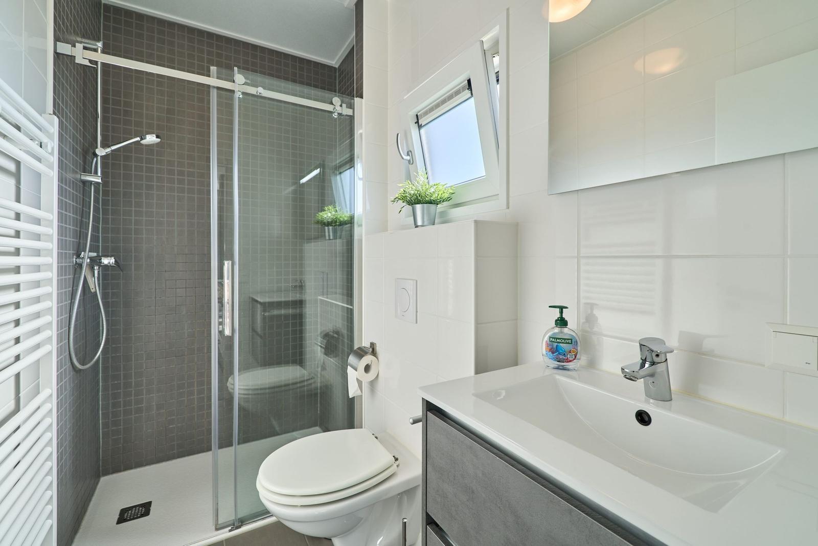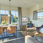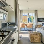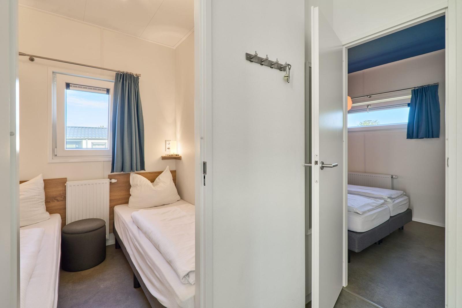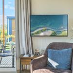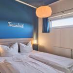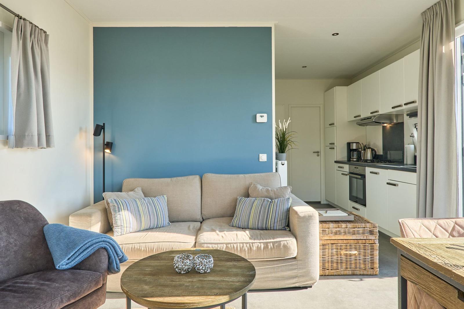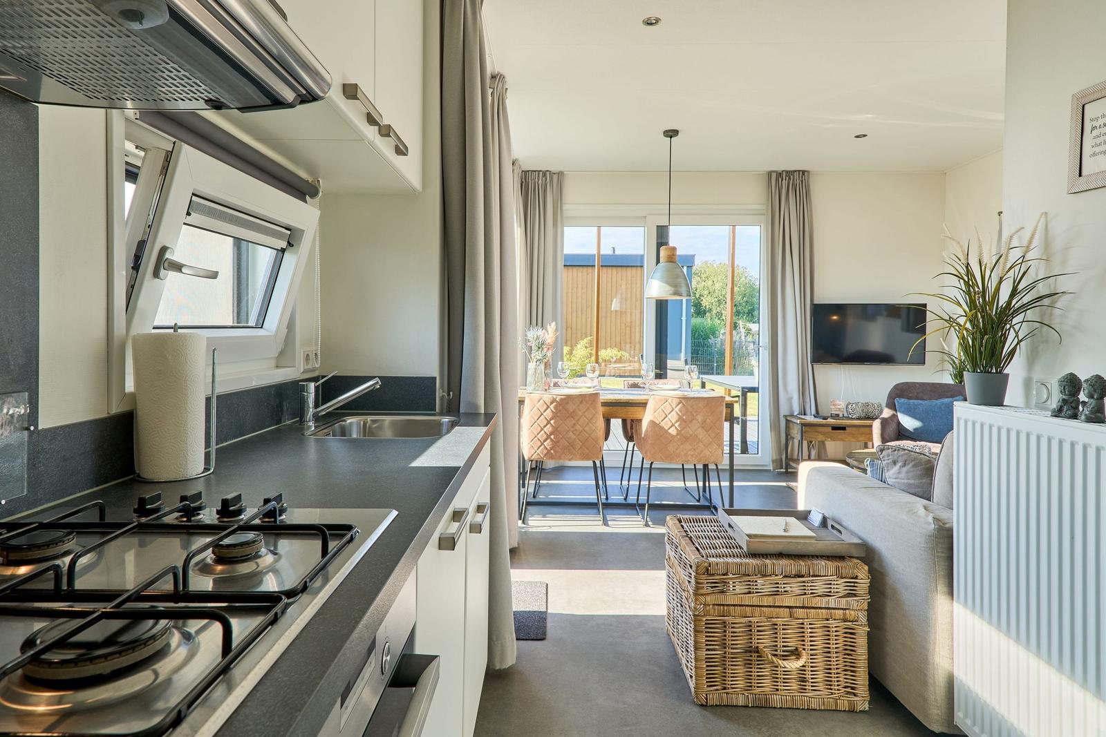 Das Chalet Relax-Inn in der Ferienanlage Seeparx Süsel bietet auf 40 m² modernen Komfort für bis zu vier Personen. Die offene Küche, harmonisch ins Wohnzimmer integriert, ist umfassend ausgestattet und verfügt über eine Spülmaschine, einen Gasbackofen sowie weitere Geräte wie Kühlschrank mit Gefrierfach, Wasserkocher, Toaster, Kaffeemaschine und Mikrowelle. Zwei separate Schlafzimmer mit Vinylbodenbelag garantieren einen erholsamen Schlaf. Das Tageslichtbadezimmer ist mit bodengleicher Dusche, WC, Waschbecken und Handtüchern ausgestattet. Für zusätzlichen Komfort sorgen Klimaanlage, WLAN und ein Flachbildfernseher. Gemeinschaftlich nutzbar sind Waschmaschine und Trockner, die sich im Haus befinden. Eine möblierte Terrasse lädt zum Entspannen ein. Bettwäsche ist inklusive, und ein kostenloser Parkplatz sowie eine Ladestation für Elektroautos sind vorhanden. Das Chalet ist ein Nichtraucherhaus und eignet sich hervorragend für Familien sowie aktive Gäste.