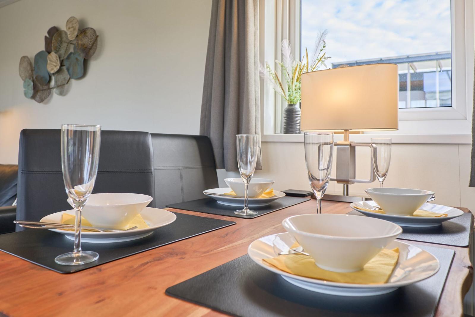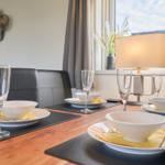 Das Ferienhaus „Seeglück“ in der Ferienanlage Seeparx in Süsel bietet auf 40 m² modernen Komfort für bis zu vier Personen. Es verfügt über zwei separate Schlafzimmer und ein stilvolles Badezimmer mit Dusche. Der offene Wohnbereich ist mit einem gemütlichen Sofa, einer Sofaecke und einem einladenden Essbereich ausgestattet. Die integrierte Küche ist ideal für Selbstversorger und beinhaltet Backofen, Herd, Kühlschrank mit Gefrierfach, Spülmaschine sowie alle notwendigen Küchenutensilien. Zu den Annehmlichkeiten zählen ein Smart-TV, kostenfreies WLAN und eine Gasheizung. Bettwäsche und Handtücher sind vorhanden. Gemeinschaftliche Einrichtungen wie eine Waschmaschine und ein Trockner stehen zur Verfügung. Das Nichtraucherhaus bietet zudem eine überdachte Terrasse mit Gartenmöbeln, ideal für entspannte Stunden. Ein Parkplatz sowie eine Ladestation für Elektroautos sind ebenfalls vorhanden.