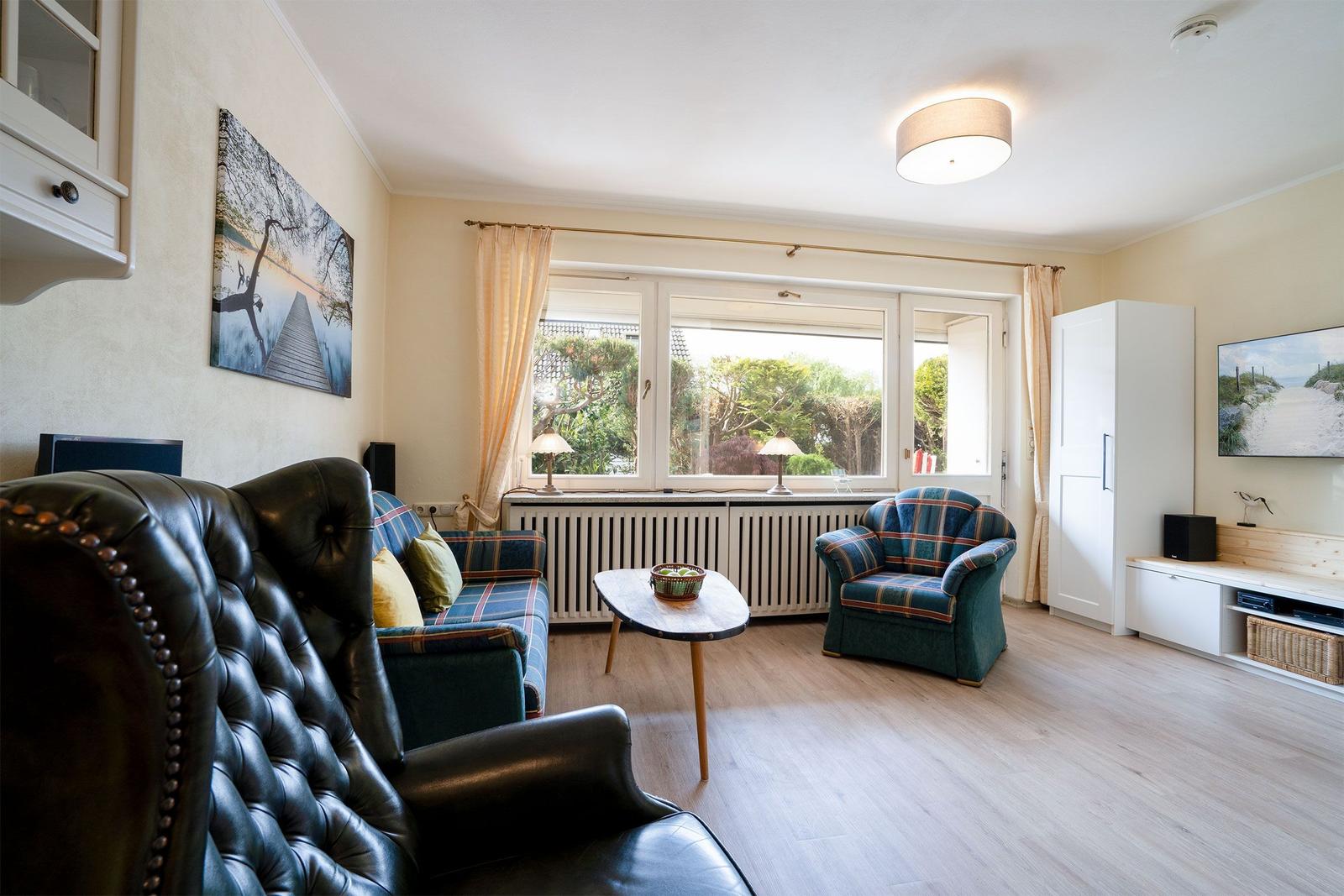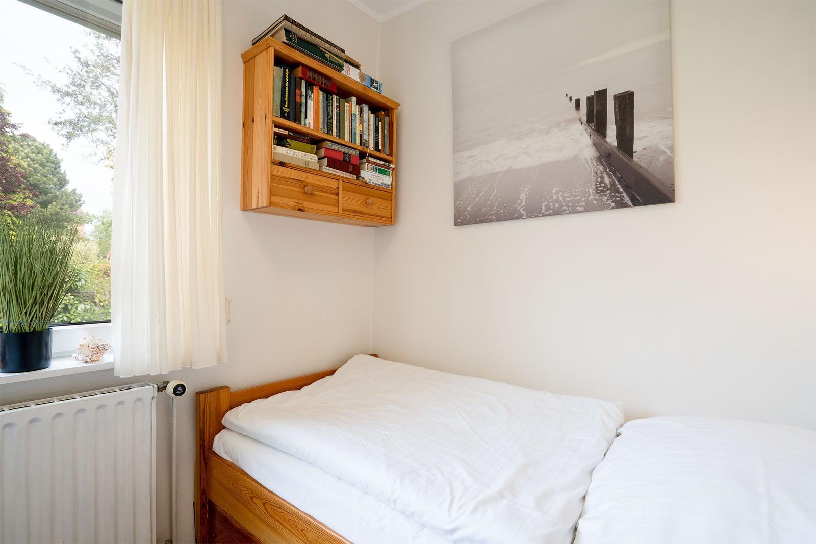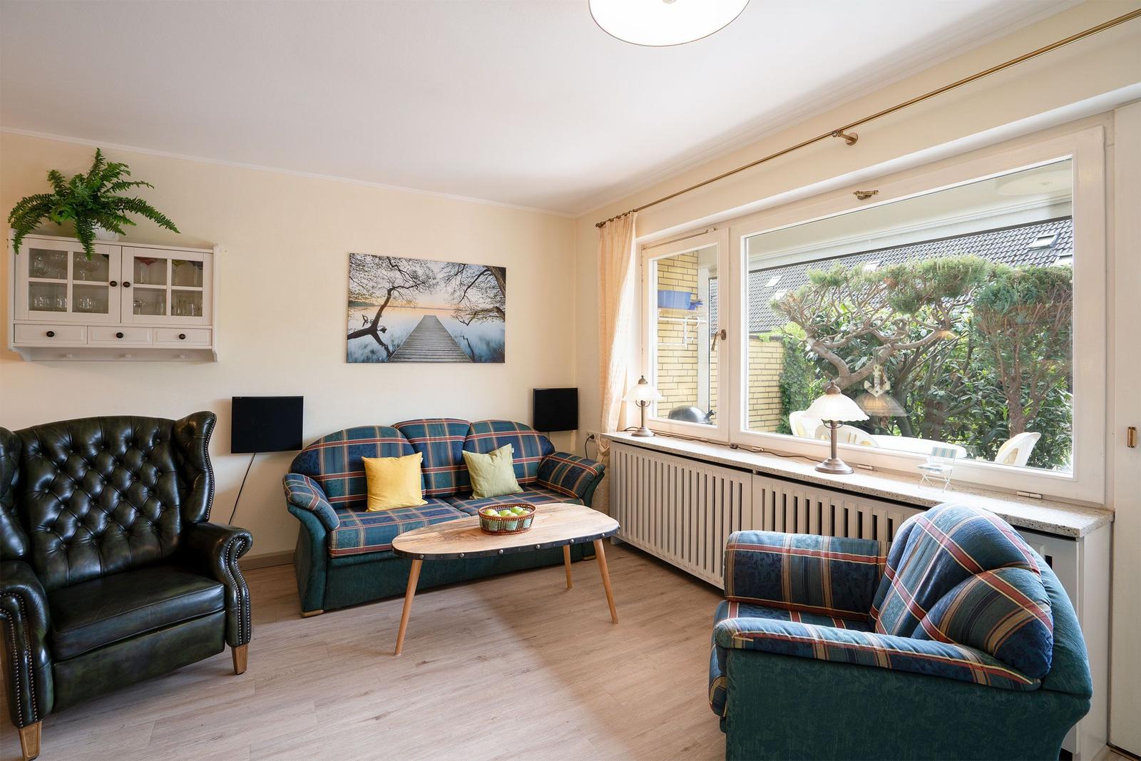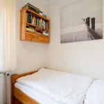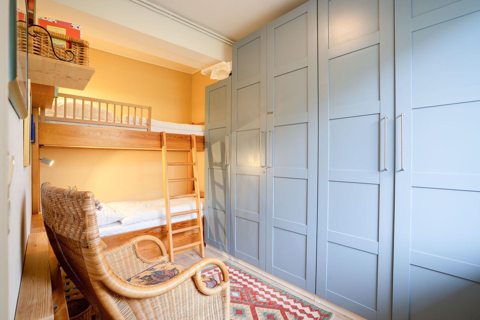 Es gibt zwei Schlafzimmer und einen offenen Wohnbereich mit Sofaecke und Essbereich. Für Unterhaltung sorgt ein Fernseher, und WLAN ist kostenlos verfügbar. Das Schlafzimmer hat zwei Einzelbetten (0,90 x 2,00 m) und ein zweites Schlafzimmer mit einem Etagenbett (0,90 x 2,00 m).