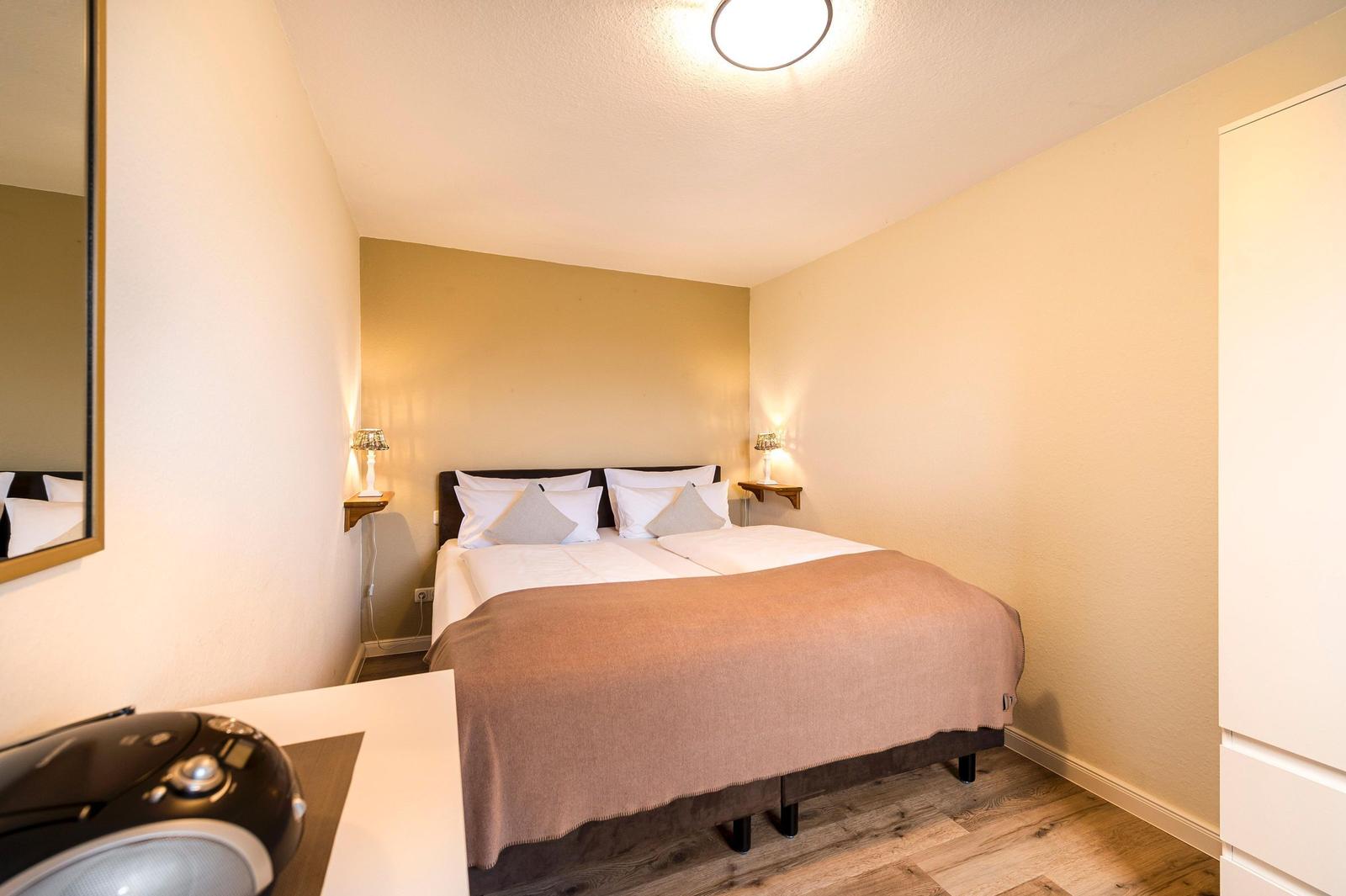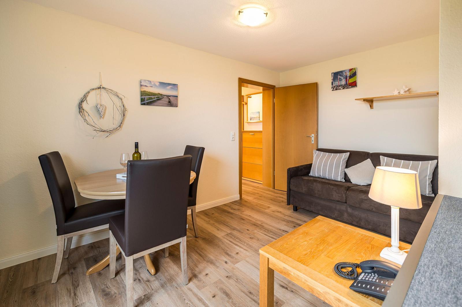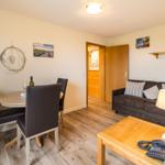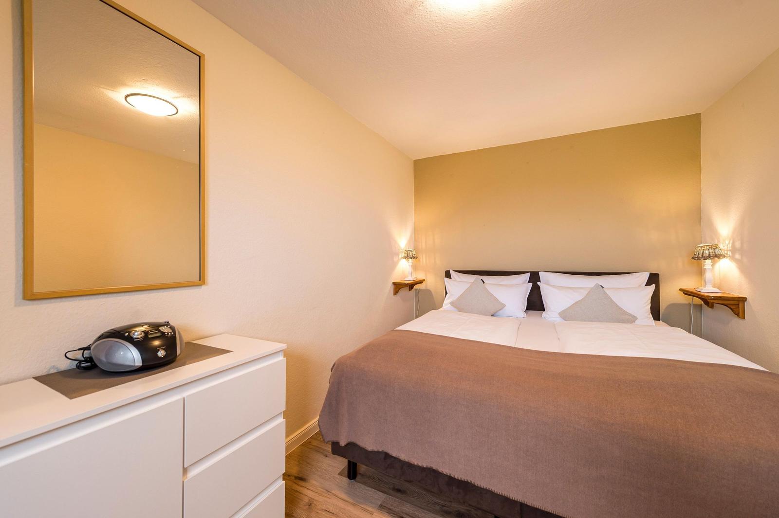 Die Ferienwohnung überzeugt durch ihre moderne Ausstattung und einladende Räumlichkeiten. Sie bietet ein gemütliches Schlafzimmer mit einem Doppelbett, ideal für entspannte Nächte. Die separate Küche ist vollständig ausgestattet mit einem Elektro-/Gasherd, Geschirrspüler, Backofen, Mikrowelle, Kühlschrank und Kaffeemaschine, sowie einem praktischen Starterset an Gewürzen. Ein Esstisch lädt zu gemeinsamen Mahlzeiten ein. Im Badezimmer mit Fenster findet sich ein Duschbad, Haartrockner, Kosmetikspiegel und Badetücher. Für gemütliche Stunden sorgt ein Kamin, während die HiFi-Anlage und der TV für Unterhaltung bereitstehen. Die Wohnung ist allergikergeeignet und umfasst zahlreiche Annehmlichkeiten, darunter WLAN, Fußbodenheizung und Babyangebote wie einen Kinderhochstuhl und Spielzeug. Ein Parkplatz, Reinigungseinrichtungen sowie Kindersicherungen für Steckdosen sind ebenfalls vorhanden. Ein Frühstücksservice kann auf Wunsch gebucht werden. Die ideale Unterkunft für Familien und Erholungssuchende.