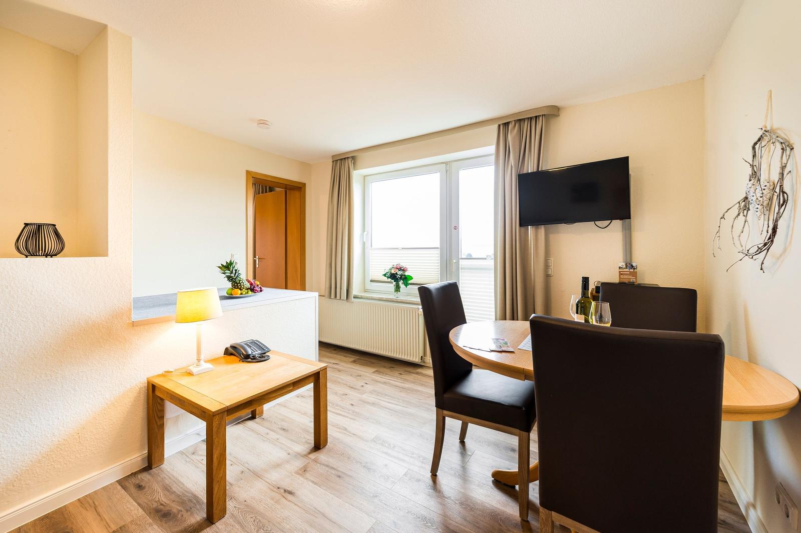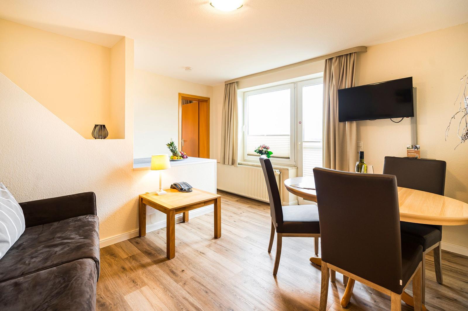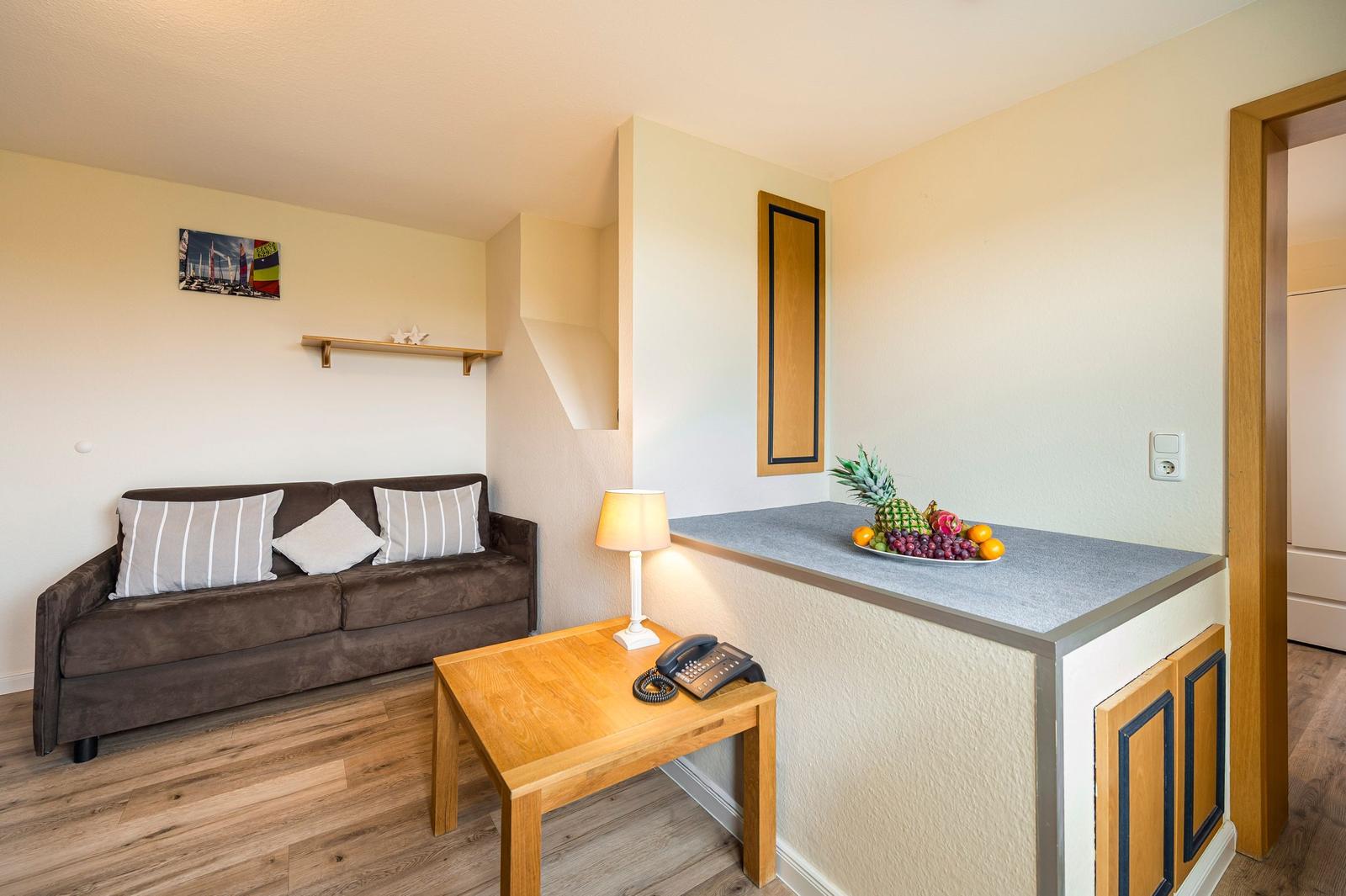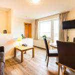 Die Ferienwohnung überzeugt durch ihre moderne Ausstattung und einladende Räumlichkeiten. Sie bietet ein gemütliches Schlafzimmer mit einem Doppelbett, ideal für entspannte Nächte. Die separate Küche ist vollständig ausgestattet mit einem Elektro-/Gasherd, Geschirrspüler, Backofen, Mikrowelle, Kühlschrank und Kaffeemaschine, sowie einem praktischen Starterset an Gewürzen. Ein Esstisch lädt zu gemeinsamen Mahlzeiten ein. Im Badezimmer mit Fenster findet sich ein Duschbad, Haartrockner, Kosmetikspiegel und Badetücher. Für gemütliche Stunden sorgt ein Kamin, während die HiFi-Anlage und der TV für Unterhaltung bereitstehen. Die Wohnung ist allergikergeeignet und umfasst zahlreiche Annehmlichkeiten, darunter WLAN, Fußbodenheizung und Babyangebote wie einen Kinderhochstuhl und Spielzeug. Ein Parkplatz, Reinigungseinrichtungen sowie Kindersicherungen für Steckdosen sind ebenfalls vorhanden. Ein Frühstücksservice kann auf Wunsch gebucht werden. Die ideale Unterkunft für Familien und Erholungssuchende.