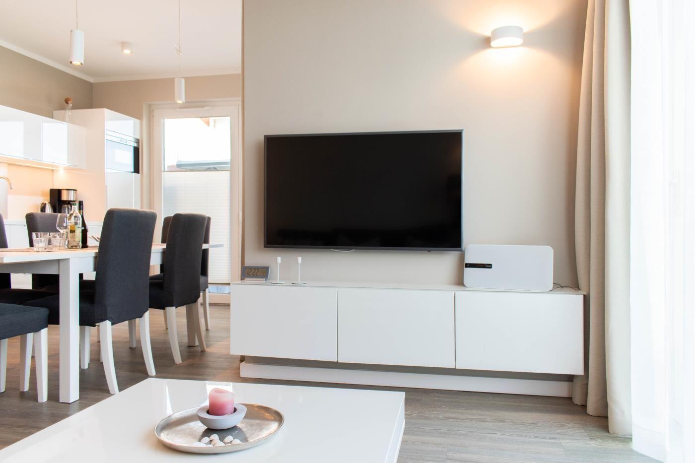 Unterhaltung am Abend: Ein großer LED-TV im Wohnzimmer lädt zu langen Filmabenden ein. Ein weiterer LED-TV befindet sich in dem einem Schlafzimmer. WLAN-Zugang und eine Stereoanlage mit Radio/CD / Bluetooth & USB-Anschluss gehören ebenfalls zum Entertaiment.