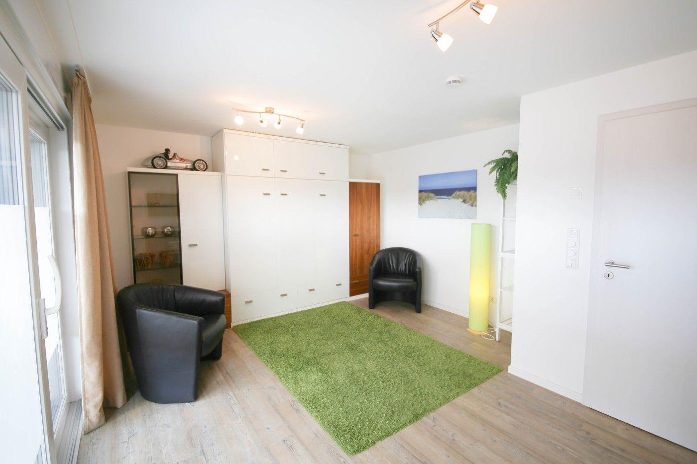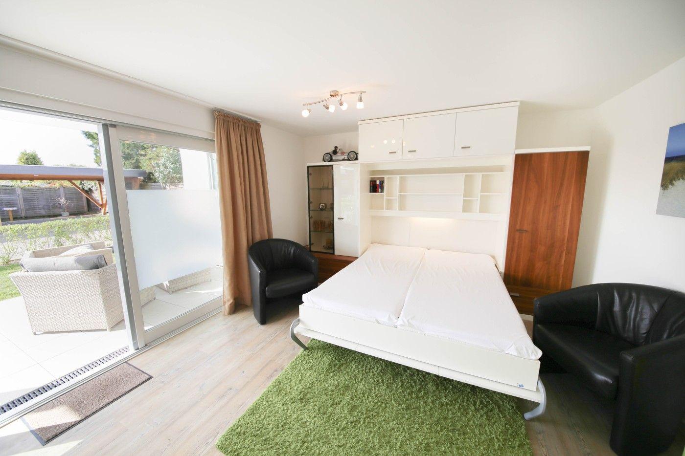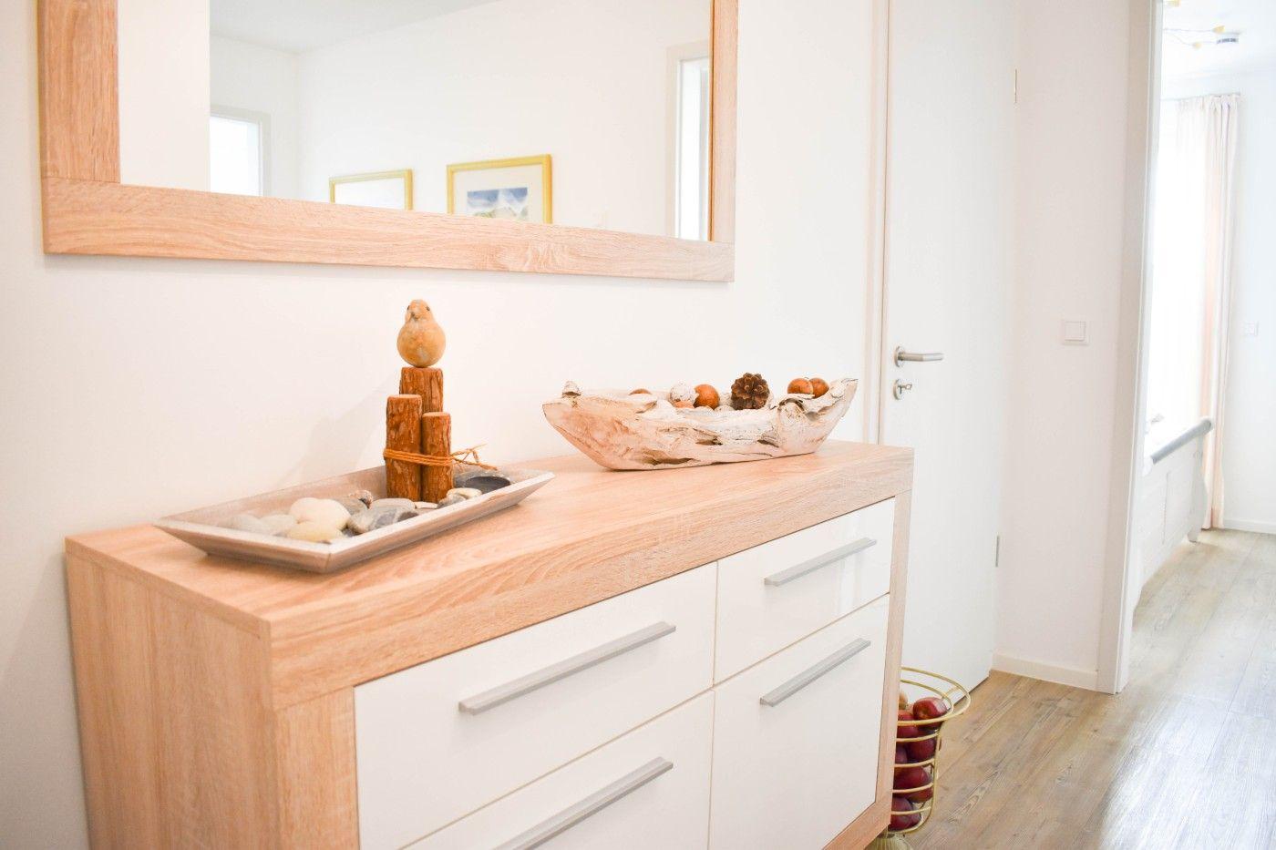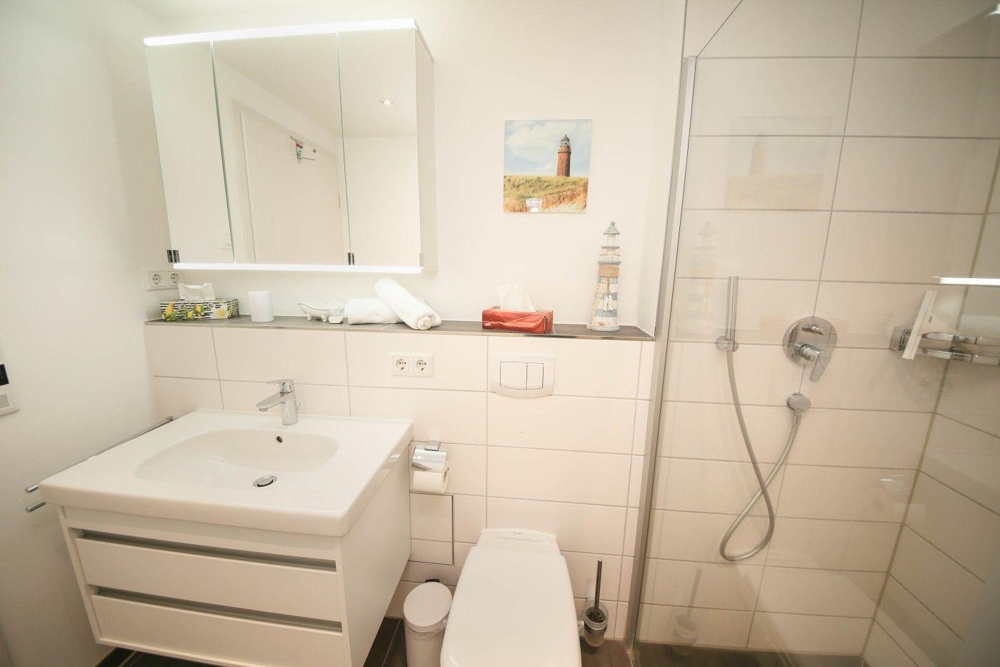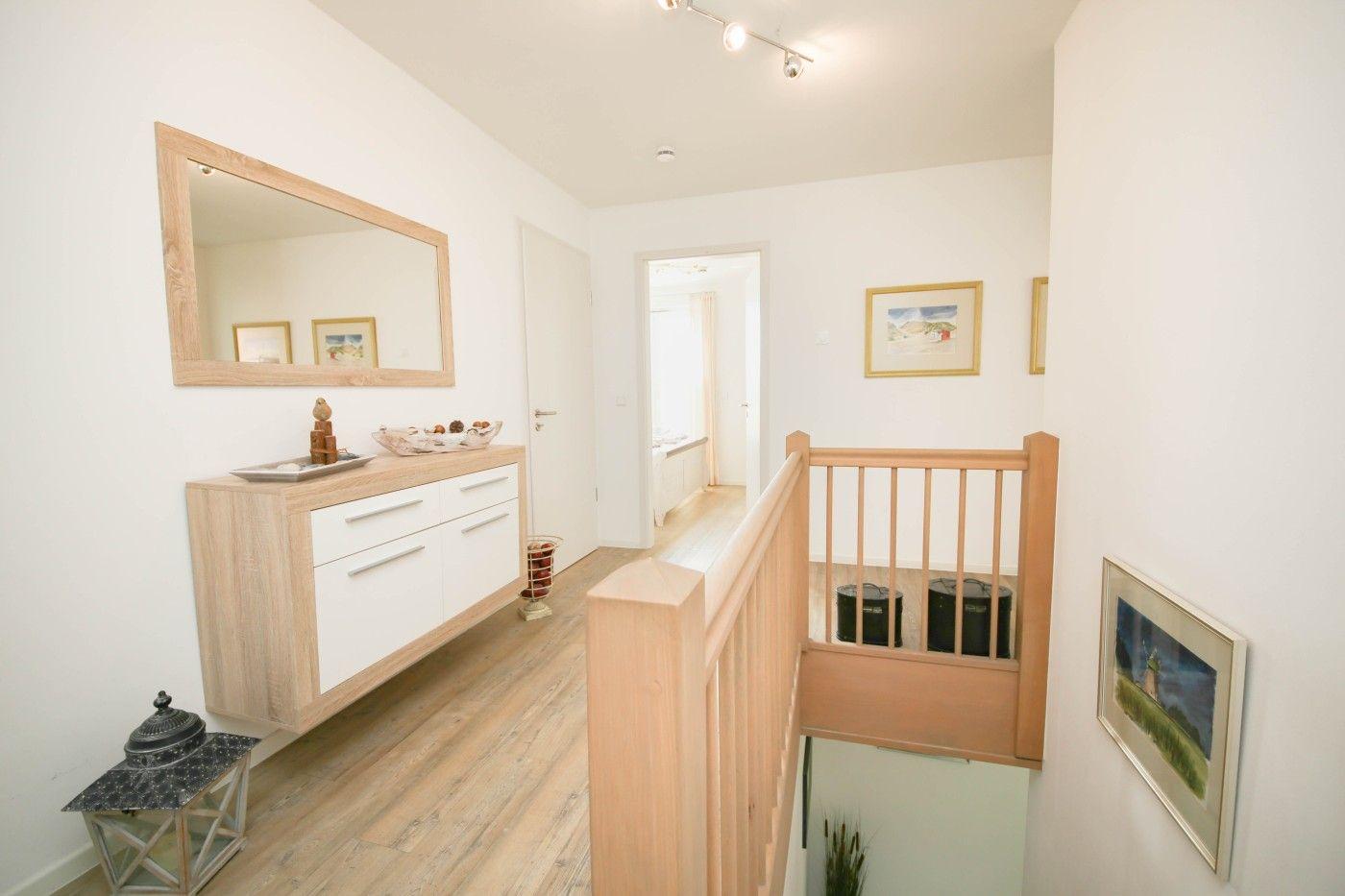 Der lichtdurchflutete und moderne Wohnraum ist geschickt aufgeteilt: Die offene Küche grenzt direkt an den Essplatz, sodass man auch im Urlaub gemeinsam kulinarische Highlights zaubern kann. Direkt an der Fensterfront befindet sich die große Couchecke mit einem gemütlichen TV-Sessel. Ebenso auf dieser Etage befindet sich eines der beiden Schlafzimmer, welches mit einem bequemen Doppelbett (1,80er Breite) und einem geräumigen Kleiderschrank ausgestattet ist. Die hochwertigen Matratzen der Marke Irisette sorgen für einen besonders erholsamen Schlaf. Das Badezimmer glänzt mit einer ebenerdigen Rainfalldusche und einem Handtuchheizkörper.