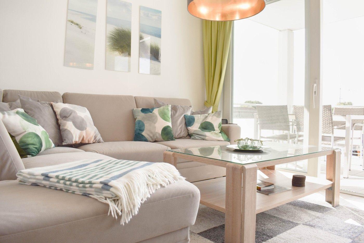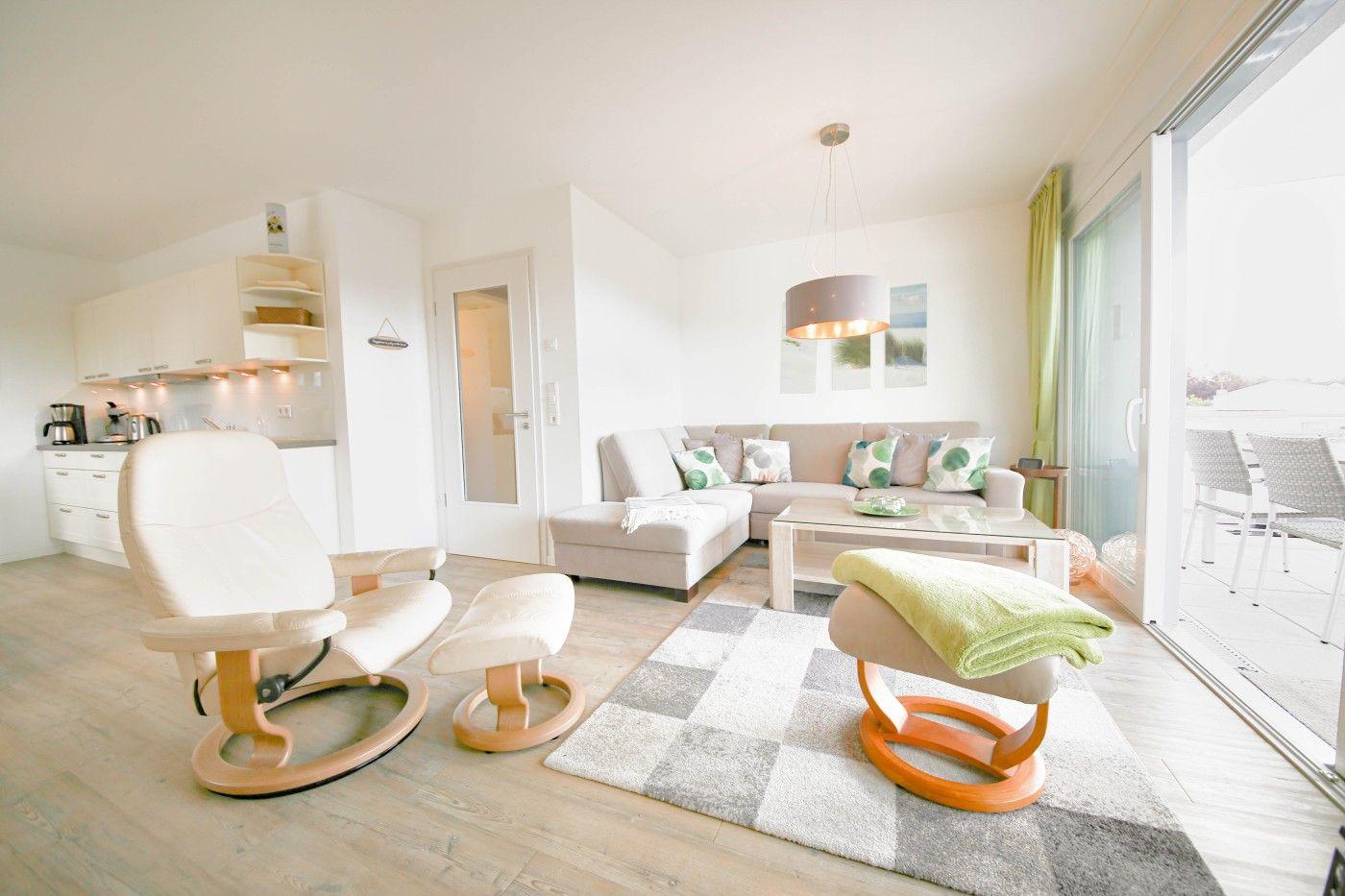 Die Ferienwohnung glänzt durch ihre hochwertige und moderne Ausstattung. Die Farbakzente in frischen Grüntönen sorgen für eine besonders frische und luftige Atmosphäre. Die Fußbodenheizung in der gesamten Wohnung bildet ein wohliges und gemütliches Ambiente, sodass Sie sich in dieser Wohnung von der ersten Sekunde an wohlfühlen.