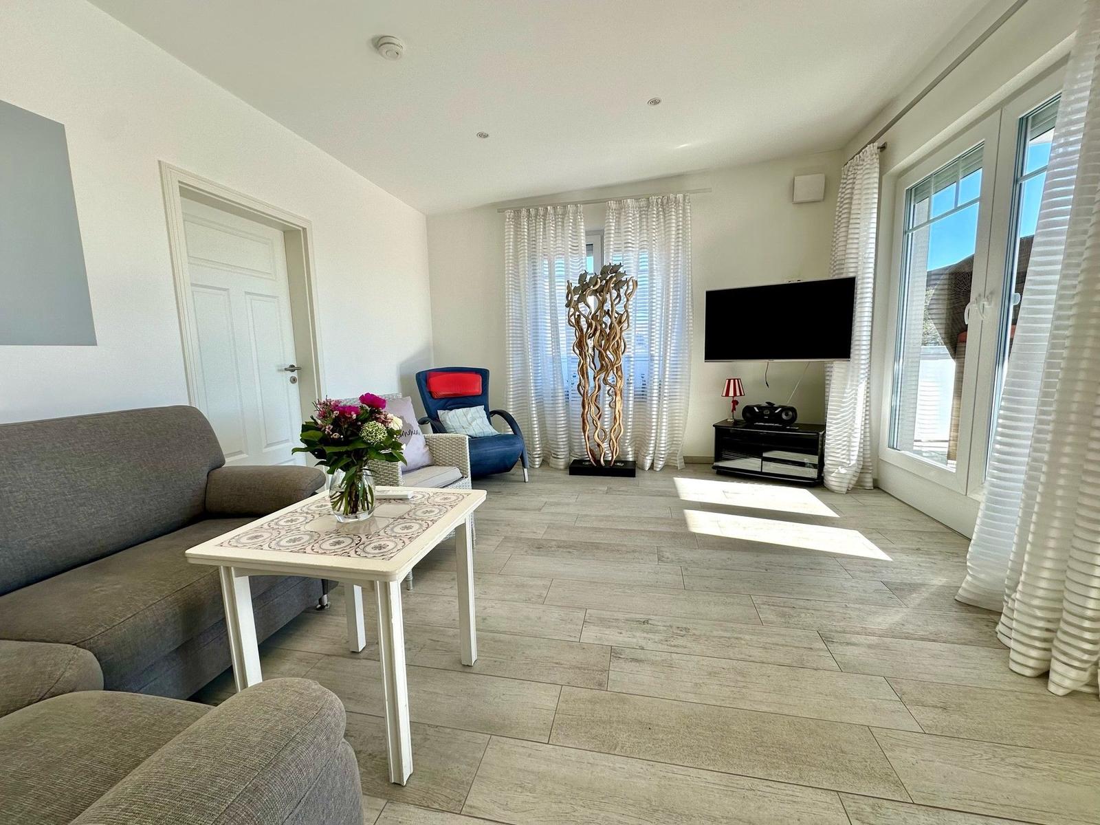 Die Ferienwohnung überzeugt durch ihre großzügige Raumaufteilung und moderne Ausstattung. Sie verfügt über zwei Schlafzimmer, eines mit einem Doppelbett und eines mit einem Einzelbett, ideal für Familien oder kleine Gruppen. Die offene Küche ist mit allem ausgestattet, was benötigt wird, einschließlich Geschirrspüler, Elektro-/Gasherd, Backofen, Mikrowelle, Kühlschrank, Kaffeemaschine und Toaster. Das Badezimmer mit Fenster bietet eine bodengleiche Dusche, Haartrockner und Fußbodenheizung.