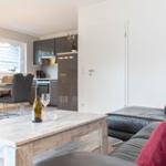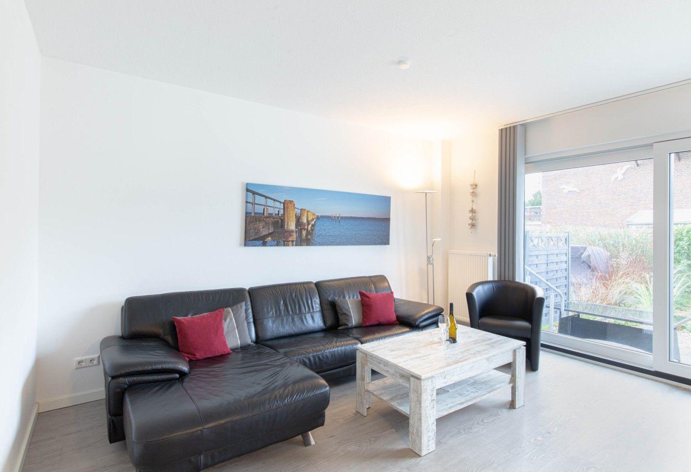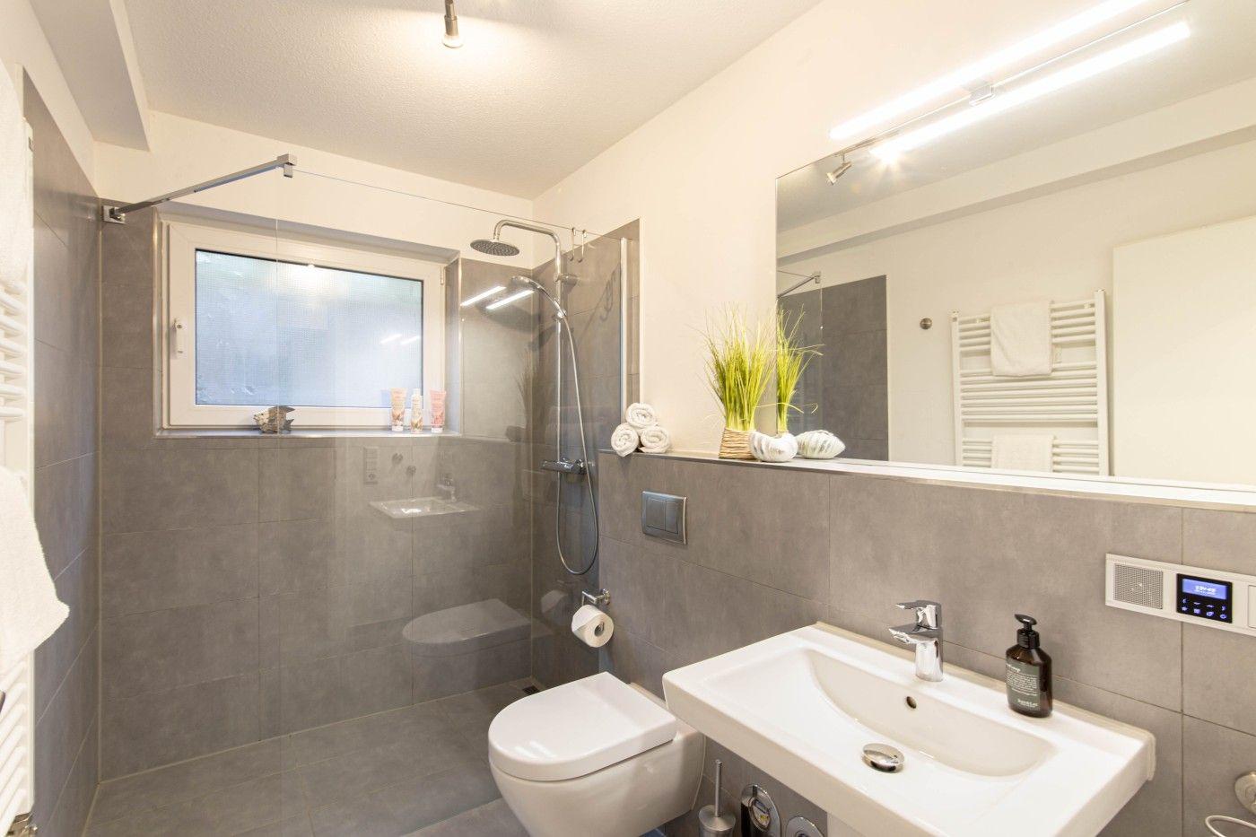 Vom Wohnzimmer aus erreicht man die großzügige, möblierte Terrasse mit süd-westlicher Ausrichtung und mit Gartenliegen und Sitzgelegenheiten, welche zum Verweilen und Relaxen einladen.