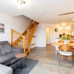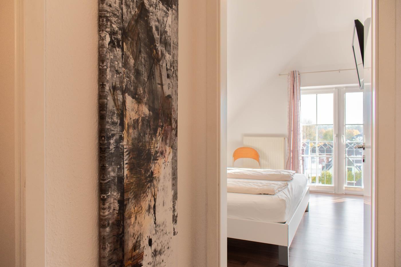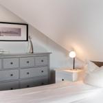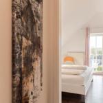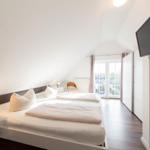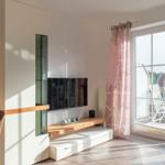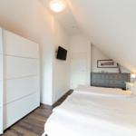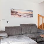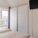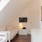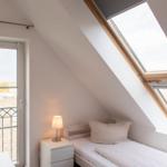 Die Maisonettewohnung verfügt über drei Zimmer, ein Vollbad und ein Gäste-WC. Im unteren Stockwerk erwartet Sie ein geräumiger Wohnbereich mit einem gemütlichen Sofa. Der Flat TV lässt Sie auch im Urlaub keine Folge Ihrer Lieblingsserie verpassen. Durch die bodentiefen Fenster erreichen Sie einen nach Süden ausgerichteten Balkon. Perfekt für das gemeinsame Mittagessen an der frischen Luft! In den Wohnbereich integriert, steht Ihnen eine vollausgestattete Küche zur Verfügung. Das Badezimmer dieser Etage hat eine großzügige Walk-In-Dusche. In der oberen Etage finden Sie ein Schlafzimmer mit einem sehr großen Doppelbett (2 Meter Breite) und einen weiteren Flat-TV vor. Das zweite Schlafzimmer bietet Ihnen zwei Einzelbetten. Hier können Sie nicht nur lustige Game-Duelle auf der PS3 genießen, sondern Sie erhaschen auch einen Blick auf die schöne Ostsee. Des Weiteren befindet sich hier das Gäste-WC.