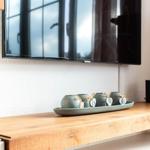 Die Wohnung ist hell und freundlich eingerichtet. Der Platz wurde optimal genutzt und die Ferienwohnung ist liebevoll dekoriert. Besonders das große Badezimmer überzeugt durch seinen mediterranen Flair.