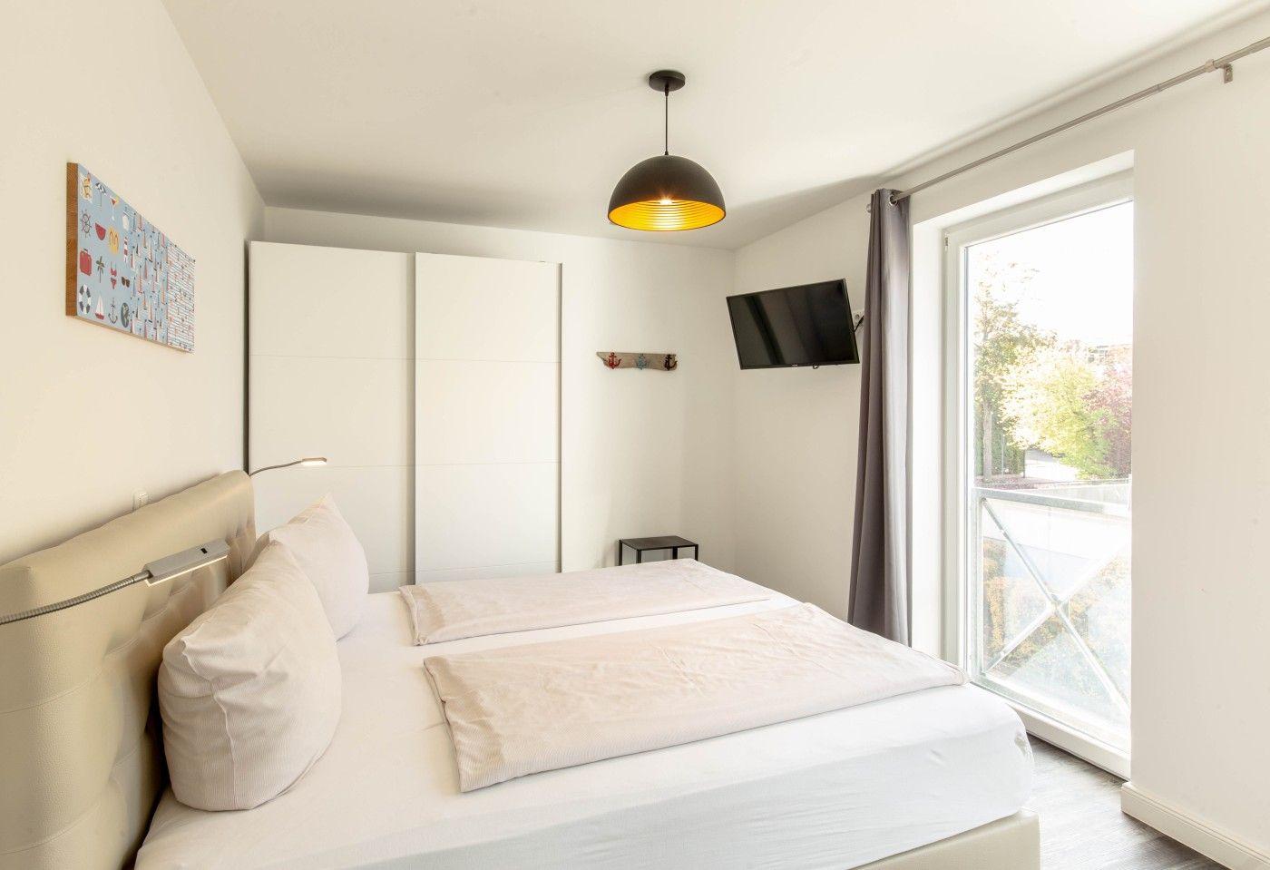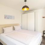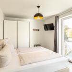 Drei Zimmer mit zwei separaten Schlafbereichen, modernem Badezimmer und Küche bietet Platz für vier Gäste. Die Schlafzimmer verfügen jeweils über ein gemütliches Boxspringbett der Marke KinkCoil (1,80er Breite & 1,60er Breite) und einen großen Kleiderschrank mit viel Stauraum. Außerdem jeweils über einen Smart LED TV. Im Wohnbereich befindet sich eine gemütliche Couch und ein Esstisch mit vier Stühlen. Die offene Küche ist gut ausgestattet und lässt keine Wünsche offen. Vom Wohnzimmer aus erreichen Sie den möblierten Balkon mit tollem seitlichen Meerblick. Das moderne Badezimmer verfügt über eine Dusche und ein WC.