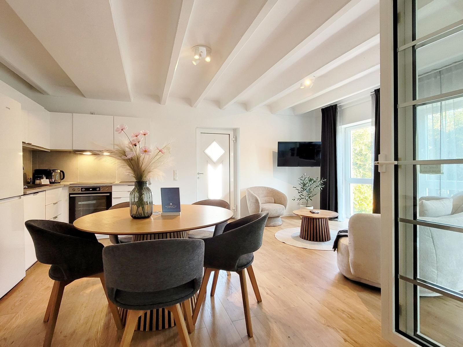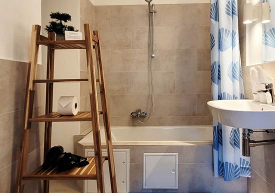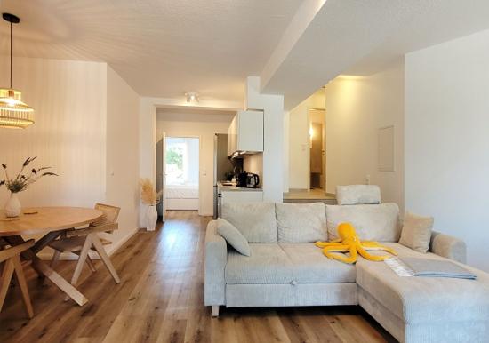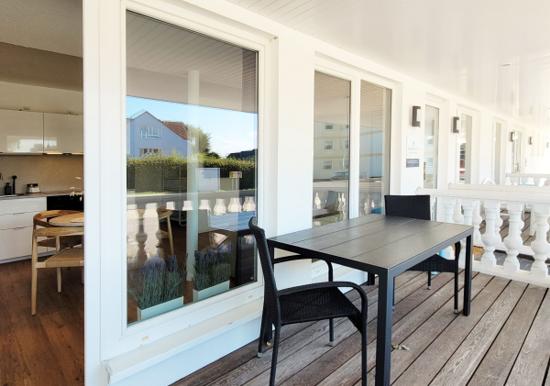 Die Anreise gestaltet sich unkompliziert, da Parkplätze direkt an der Unterkunft zur Verfügung stehen. Die Ferienwohnung wurde im Juli 2025 kernsaniert und bietet modernen Komfort für bis zu 5 Personen. Nach einem erlebnisreichen Tag können die Gäste den Abend auf der eigenen Terrasse bei einem Buch oder Glas Wein ausklingen lassen, während das beruhigende Rauschen der Wellen im Hintergrund zu hören ist.