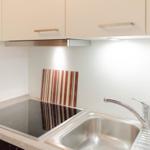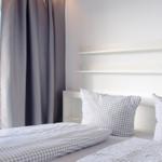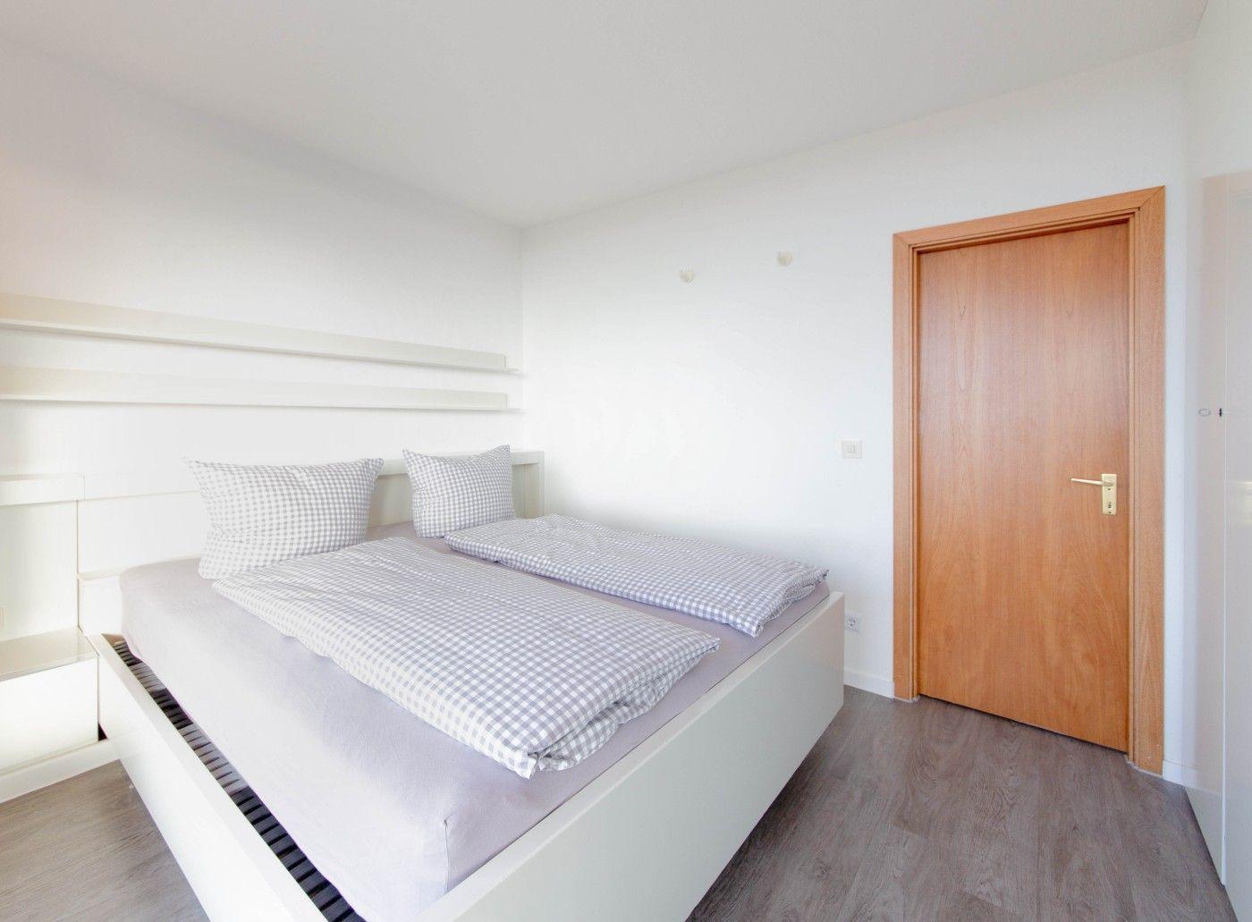 Die lichtdurchflutete Ferienwohnung ist schlicht und neutral eingerichtet. Klare Linien ziehen sich wie ein roter Faden durch die Räume. Das zeitlose und unaufgeregte Design lenkt den Fokus auf die fantastische Aussicht über die Lübecker Bucht.