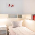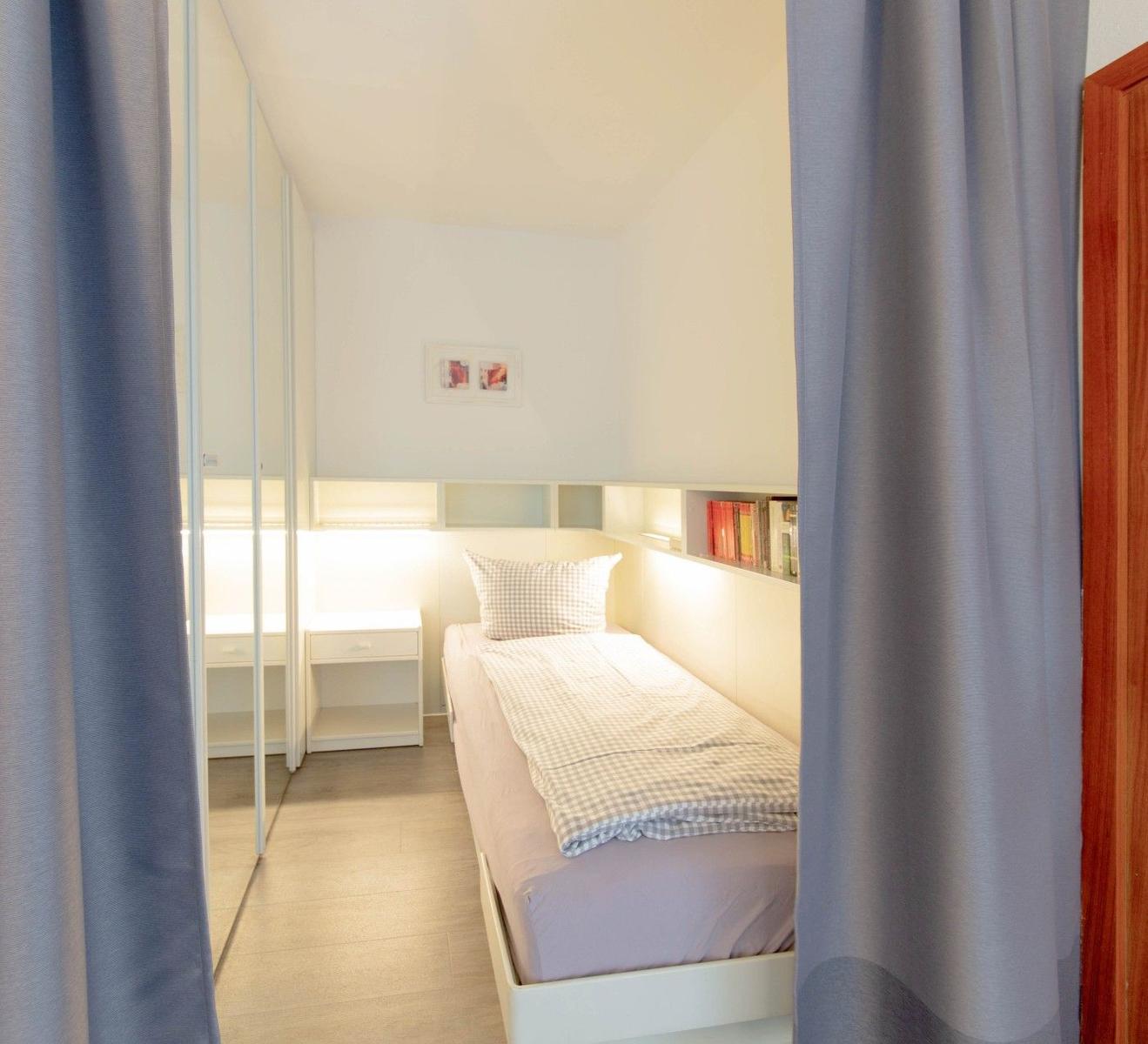 Die Zweizimmerwohnung bietet Platz für 3 Gäste. Die großen Fensterfronten in der gesamten Wohnung sorgen den ganzen Tag für eine helle und freundliche Atmosphäre. Das geräumige Wohn- und Esszimmer bildet das Herzstück dieser Ferienwohnung. Eine gemütliche Sitzecke lädt zum gemeinsamen Verweilen ein und der angrenzende Essbereich bietet Platz für vier Personen. Die Küche ist allumfassend ausgestattet und durch die Durchreiche mit Scheiben ist der Esstisch schnell gedeckt. Das separate Schlafzimmer mit Zugang zum Balkon verfügt über ein Doppelbett (1,80er Breite) und eine große Schrankwand mit reichlich Stauraum für Ihr Gepäck. Ein drittes Bett (0,90er Breite) befindet sich in einer kleinen Nische und lässt sich mit einem Vorhang vom Wohnraum abtrennen. Das innenliegende Badezimmer punktet mit einer Badewanne und einem Handtuchheizkörper. Der Balkon ist mit Gartenmöbeln ausgestatten, genießen Sie einen fabelhaften Blick über die Lübecker Bucht und den seitlichen Meerblick.