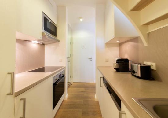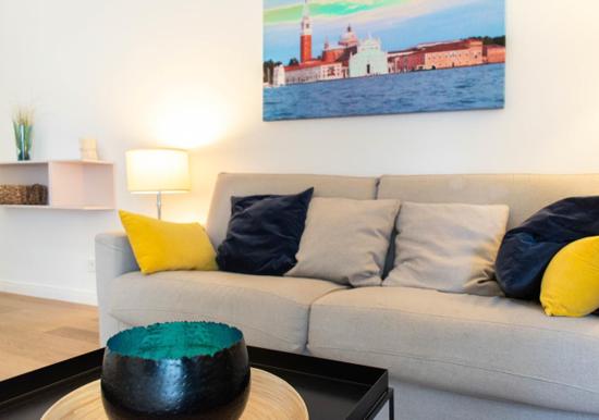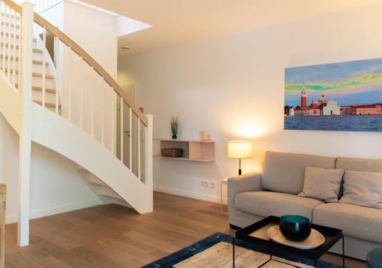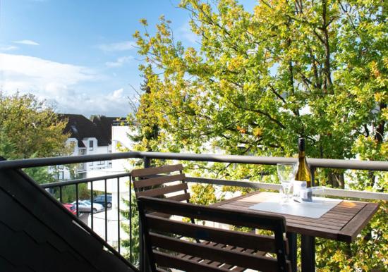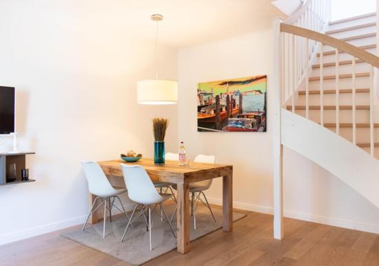 Bodentiefe Fensterelemente, Echtholzparkett und die hochwertige Einrichtung schaffen eine helle und freundliche Wohnatmosphäre. Die 35 qm wurden optimal genutzt und bieten ausreichend Platz für 2 Personen. Es steht ein geschmackvoller, großzügiger Wohn-/Schlafbereich mit einem gemütlichen Sitzbereich mit TV und eine Essecke für 3 Personen zur Verfügung sowie ein hochwertiges Boxspringbett (160x200). Die moderne individuell eingerichtete Küchenzeile ist bestens ausgestattet und verfügt über Geschirrspülmaschine und Mikrowelle mit Backfunktion. Das hochwertige, geräumige Bad verfügt über eine große, bodengleiche Dusche und einen Handtuchwärmer.