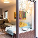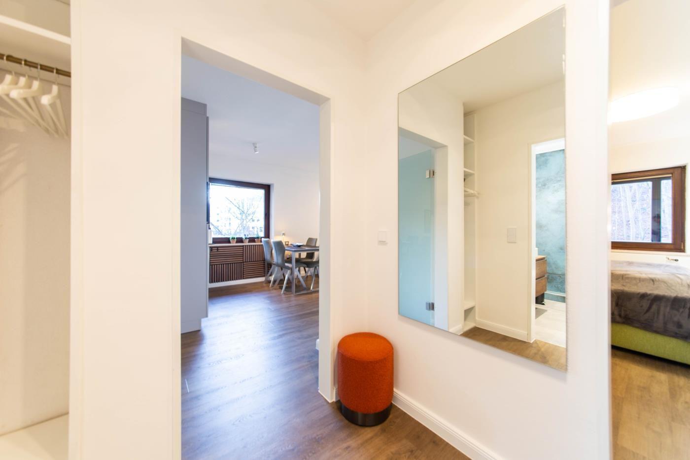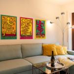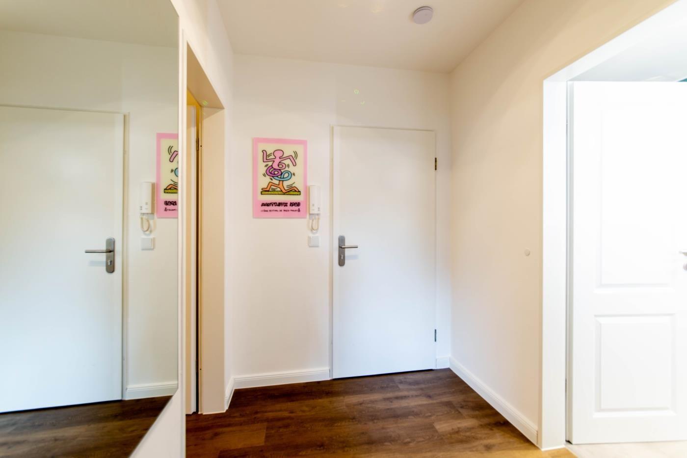 62 m² werden mit moderner und hochwertiger Einrichtung optimal genutzt. Mit viel Liebe zum Detail wurde die Wohnung sehr geschmackvoll mit verspielten Dekorationselementen eingerichtet. Die farbenfrohen Wandbilder und Dekoelemente sind ganz besondere Hingucker und zaubern eine unbeschwerte, künstlerische Atmosphäre. Alle Räume lassen sich mit Rollläden komplett verdunkeln.