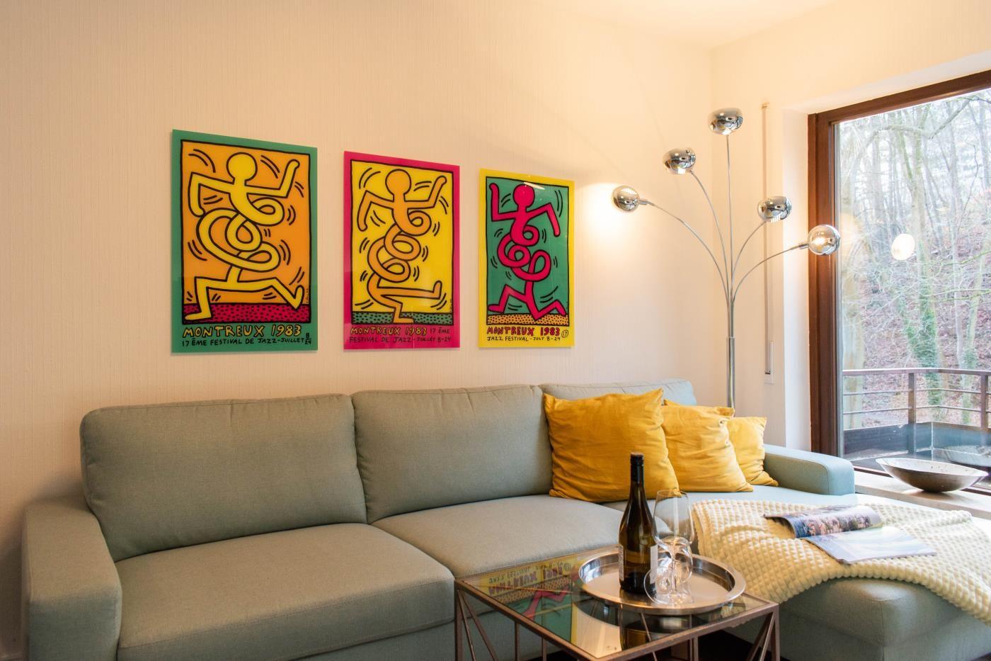 Charakteristisch eingerichtet auf 62 m² befindet sich die Ferienwohnung Montreux No. 7 in der ersten Etage einer gepflegten Ferienanlage. Der Wohnungsname ist angelehnt an das jährlich stattfindende Jazz Festival am Genfersee. Die farbenfrohen Kunstdrucke der Plakate finden sich in der gesamten Wohnung wieder.
