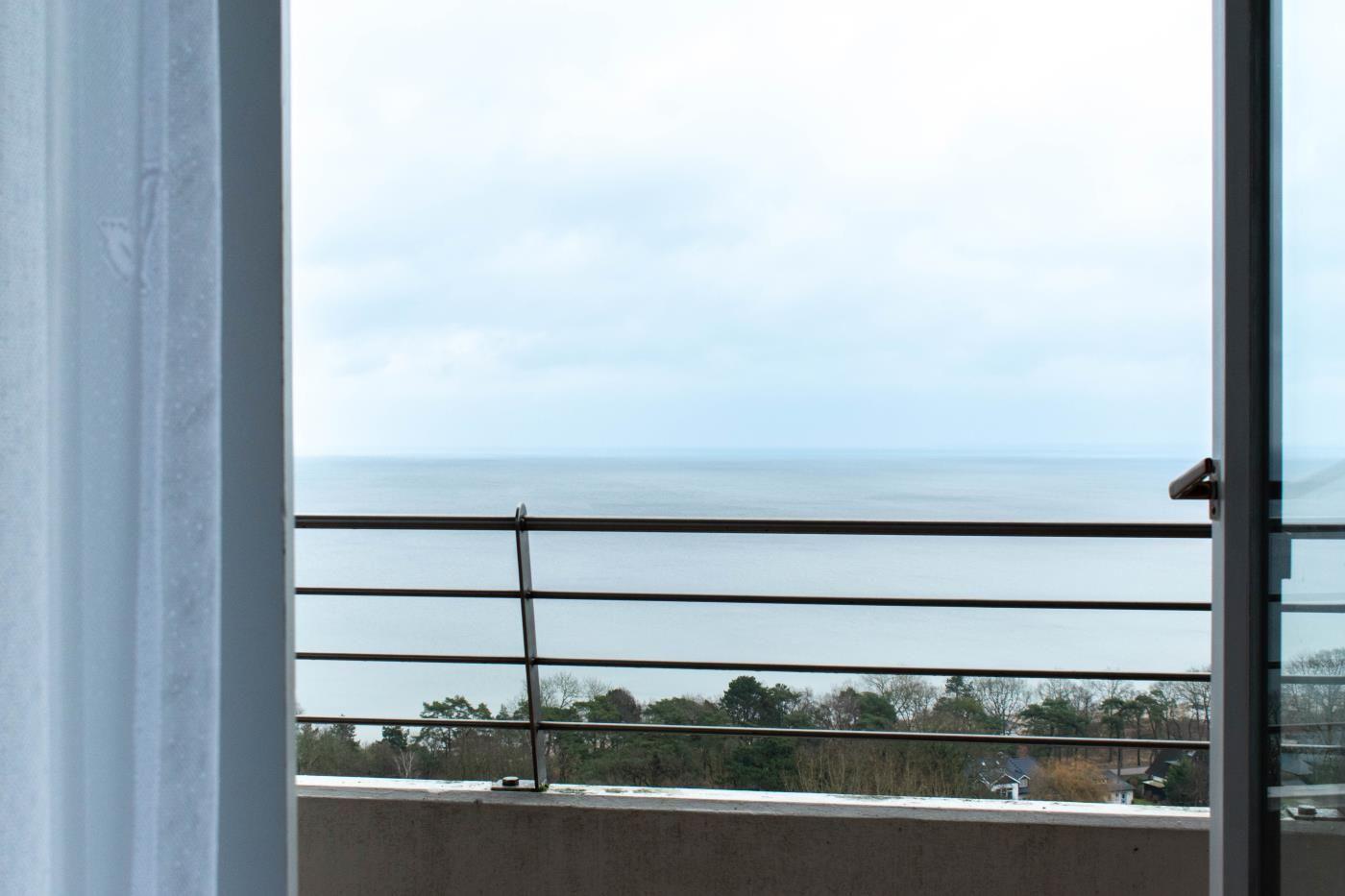 Die Zweizimmerwohnung bietet Platz für vier Gäste. Der Ausblick auf die Ostsee ist wirklich einzigartig! Die großen Fensterfronten in der gesamten Wohnung sorgen den ganzen Tag für eine helle und freundliche Atmosphäre. Das geräumige Wohn- und Esszimmer bildet das Herzstück dieser Ferienwohnung. Eine gemütliche Couch lädt zum gemeinsamen Verweilen ein und der angrenzende Essbereich bietet Platz für vier Personen. Das gemütliche Schrankbett (1,60er Breite) ist geschickt in den Wohnraum integriert. Vom Wohnraum sowie vom Schlafzimmer gelangen Sie auf den großzügigen möblierten Balkon, von welchem Sie die gesamte Lübecker Bucht überblicken können. Das separate Schlafzimmer mit tollem Meerblick ist mit einem bequemen Doppelbett (1,80 m Breite) und einen Kleiderschrank ausgestattet. Das Badezimmer verfügt über eine große Duschwanne, einen Handtuchheizkörper und ein WC.
