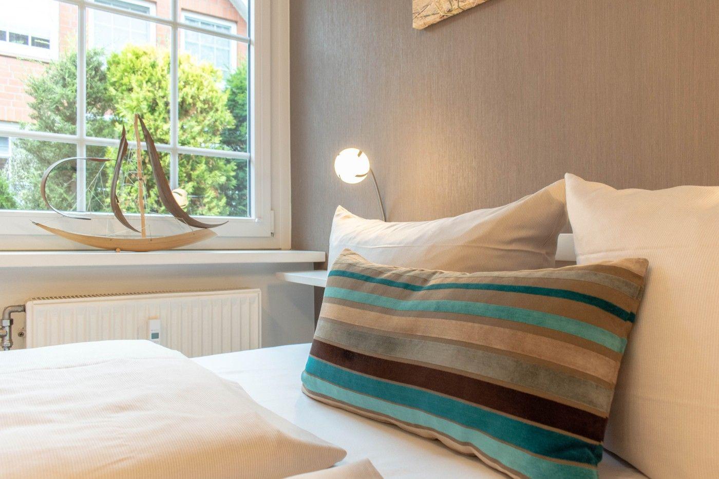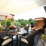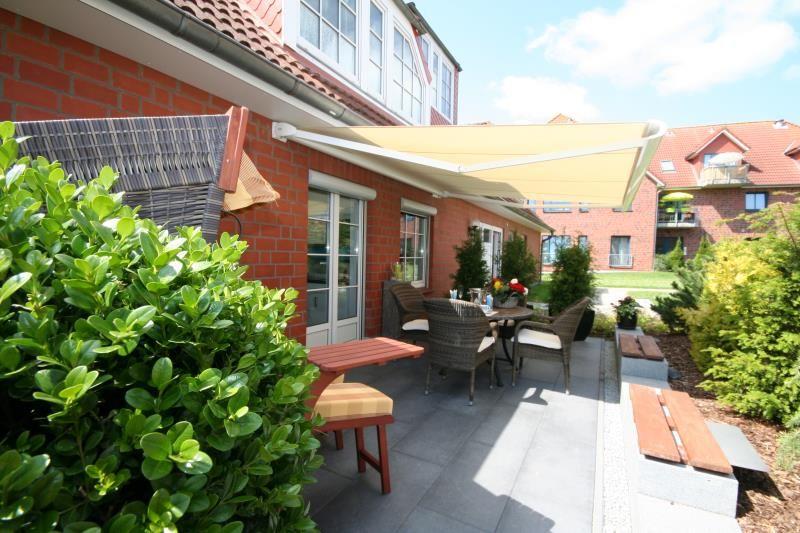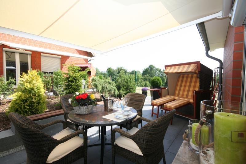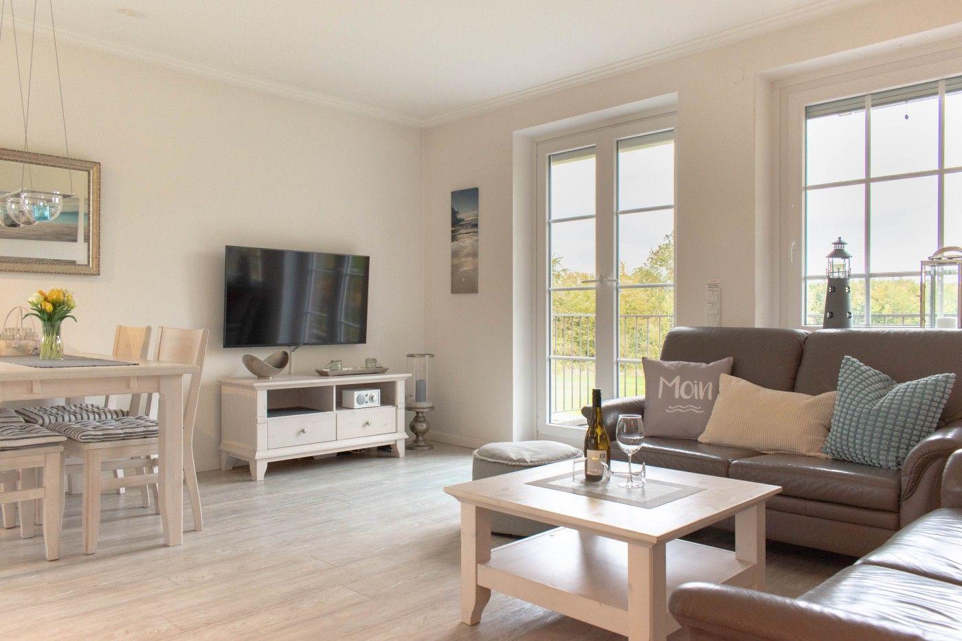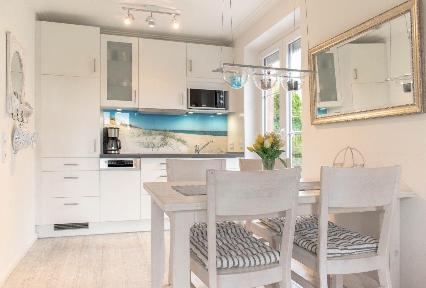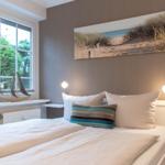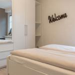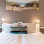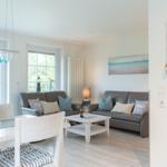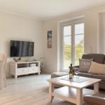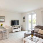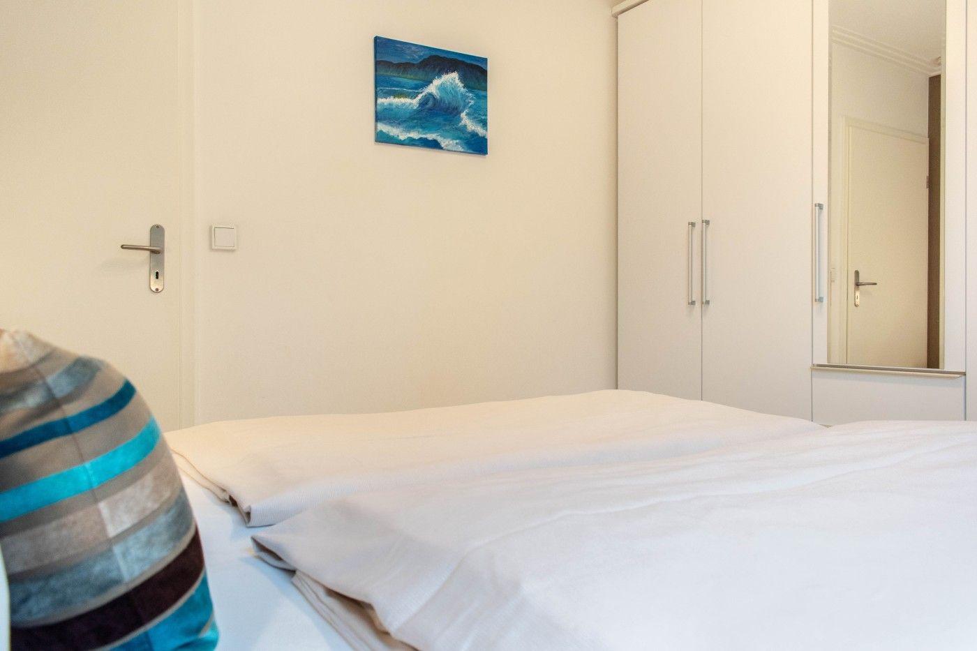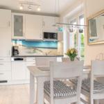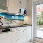 Zwei Zimmer mit separatem Schlafbereich, Wohnbereich mit Ausziehcouch und Küche bieten Platz für bis zu vier Gästen. Das separate Schlafzimmer verfügt über ein gemütliches Doppelbett (1,60er Breite) und einem großen Kleiderschrank mit viel Stauraum. Im Wohn- / Schlafbereich steht eine gemütliche Ausziehcouch (1,40er Breite) zur Verfügung. Die offene Küche ist komplett ausgestattet und lässt keine Wünsche offen. Vom Wohnzimmer aus erreicht man die großzügige, möblierte Terrasse mit eigenem Strandkorb und Markise, welche zum Verweilen und Relaxen einlädt. Das moderne Badezimmer mit einer Dusche und einem WC rundet die schöne Ferienwohnung ab.
