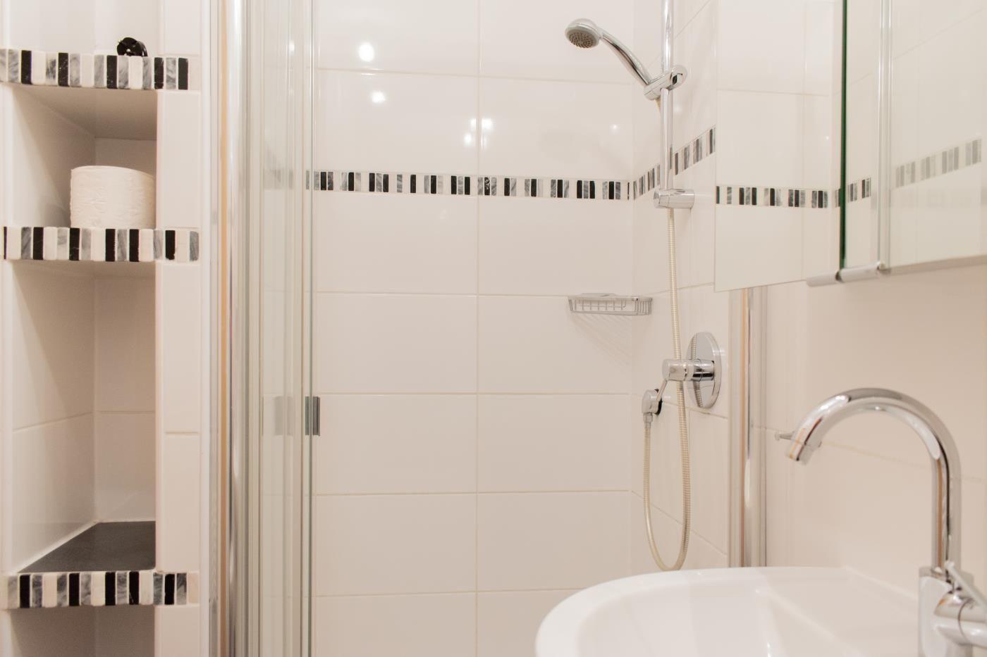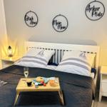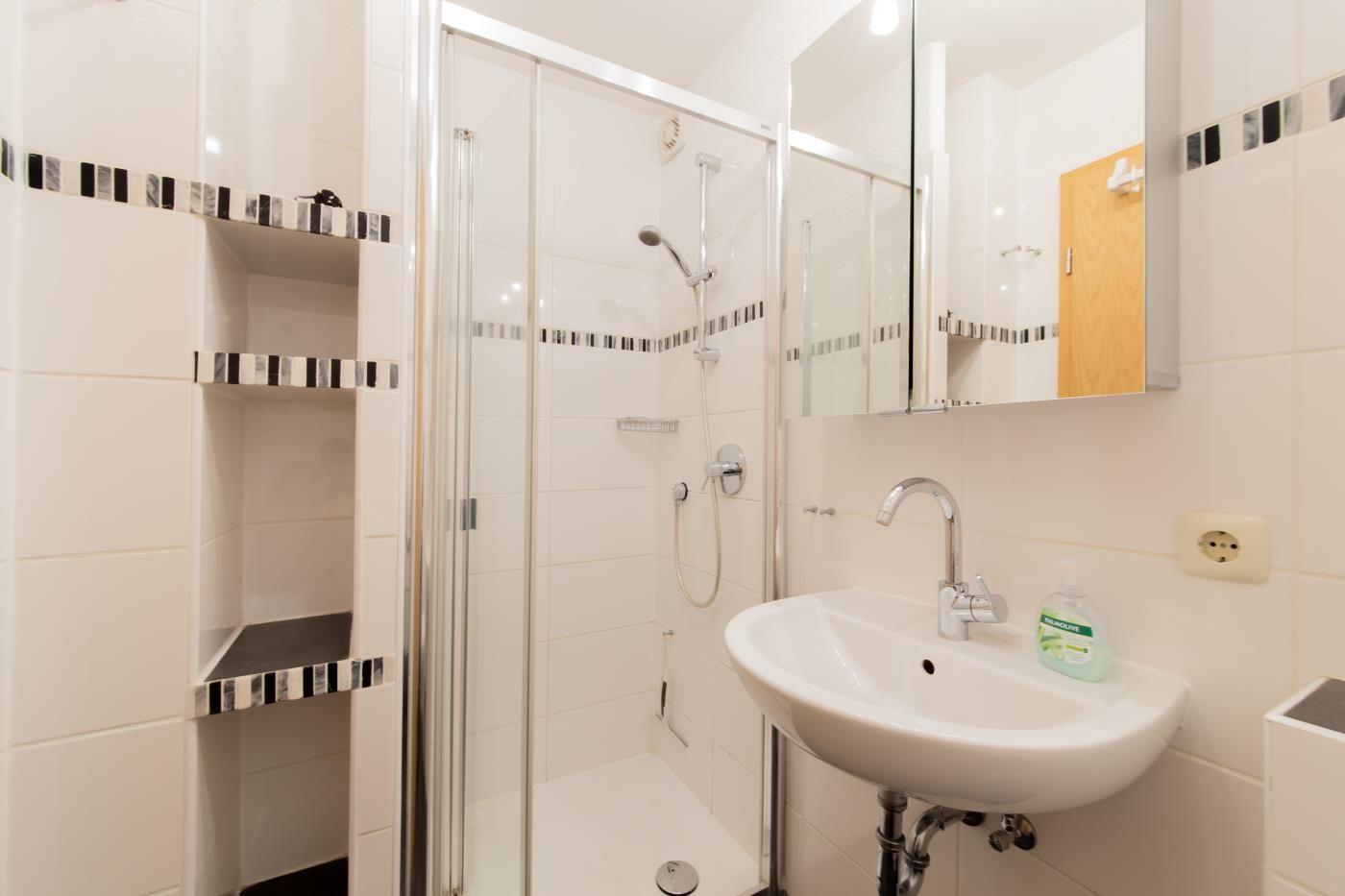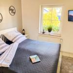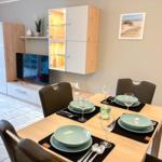 Diese gemütliche Zweizimmerwohnung bietet Platz für bis zu drei Gäste und sorgt für einen entspannten Aufenthalt. Das separate Schlafzimmer ist mit einem komfortablen Doppelbett (1,80 m Breite) ausgestattet, dazu gibt es einen großen Kleiderschrank mit ausreichend Stauraum für Ihre Kleidung und persönlichen Dinge. Im lichtdurchfluteten Wohnbereich finden Sie eine bequeme Couch sowie ein praktisches Schrankbett (1,10 m Breite), das als zusätzliche Schlafgelegenheit dient – ideal für eine dritte Person. Die offene Küche ist gut ausgestattet, sodass Sie auch im Urlaub kulinarische Köstlichkeiten zaubern können. Vom Wohnzimmer aus gelangen Sie auf die großzügige Terrasse, die mit bequemen Möbeln und einer Markise ausgestattet ist. An heißen Tagen sorgt die Markise für wohltuenden Schatten, sodass Sie die frische Luft in vollen Zügen genießen können. Das moderne Badezimmer verfügt über eine Dusche und ein WC und bietet alles, was Sie für einen angenehmen Aufenthalt benötigen. Ein weiteres Plus: Die Ferienwohnung bietet Zugang zu einer Waschmaschine und einem Trockner im Gemeinschaftskeller, die jedoch gegen eine kleine Gebühr genutzt werden können.