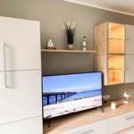 Im Schlafzimmer erwartet Sie ebenfalls ein Smart TV, der exklusiv über TV-Streaming nutzbar ist, sodass Sie sich auch hier zurücklehnen und entspannen können. Zusätzlich steht Ihnen während Ihres Aufenthaltes ein WLAN-Zugang zur Verfügung, sodass Sie immer mit der Welt verbunden bleiben. Genießen Sie Ihren Aufenthalt mit maximalem Komfort und modernster Unterhaltungstechnik!
