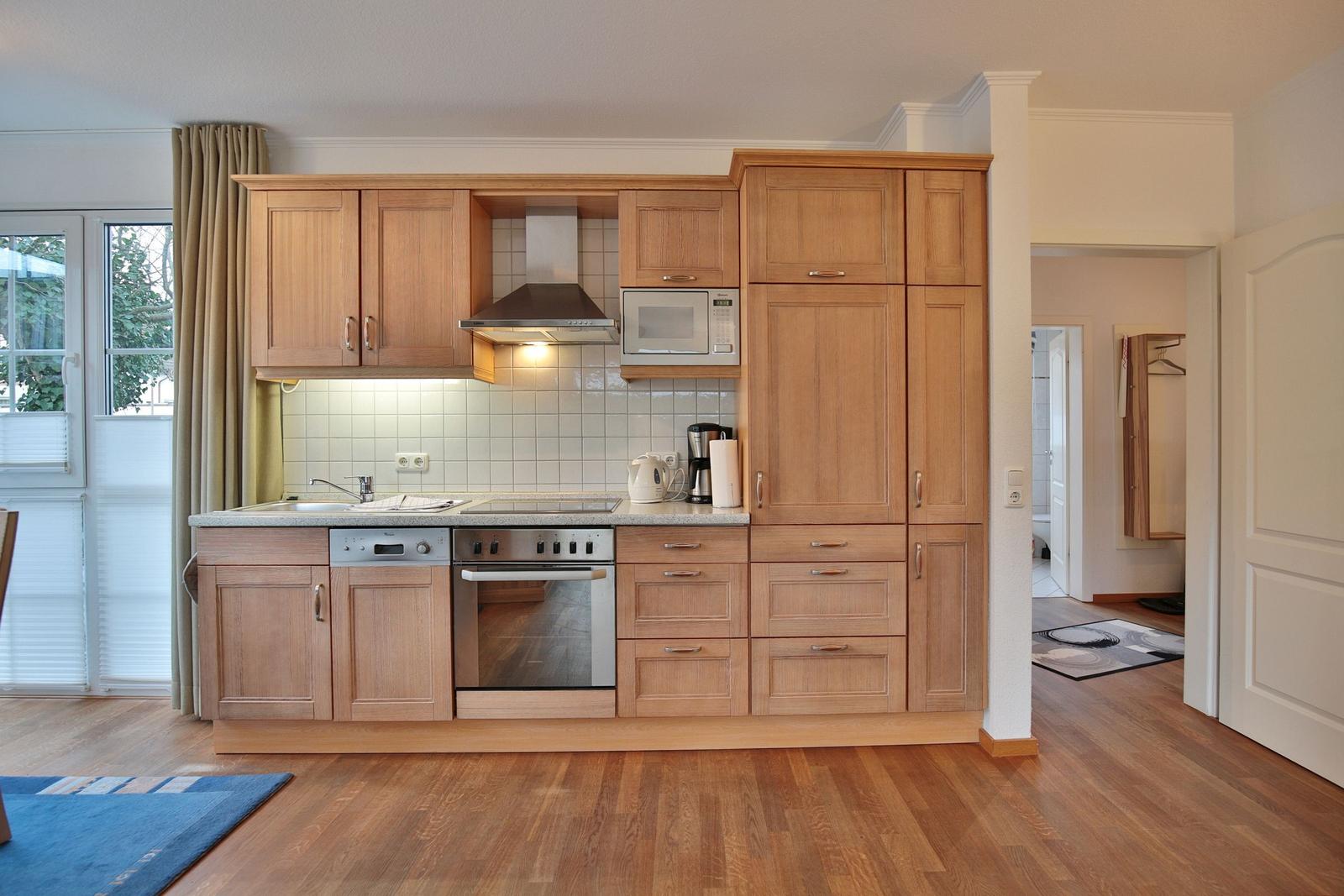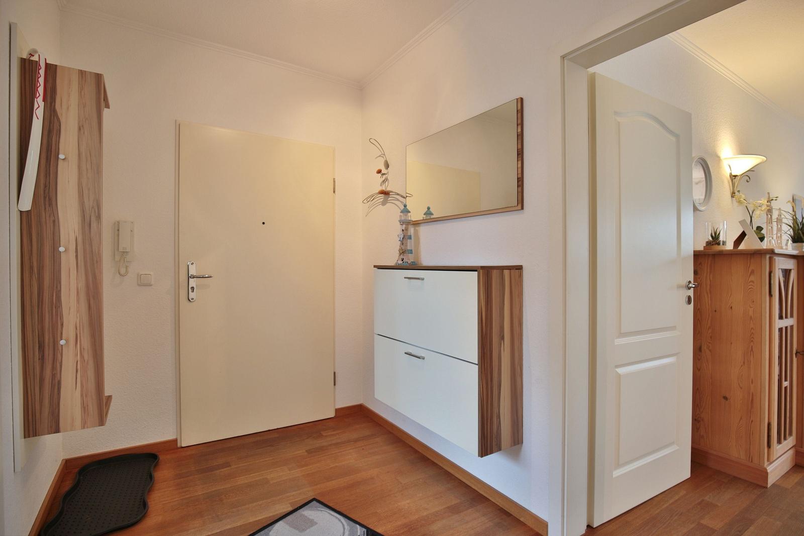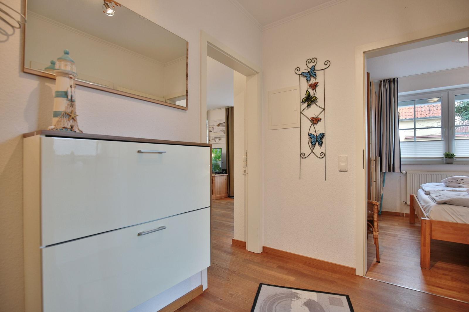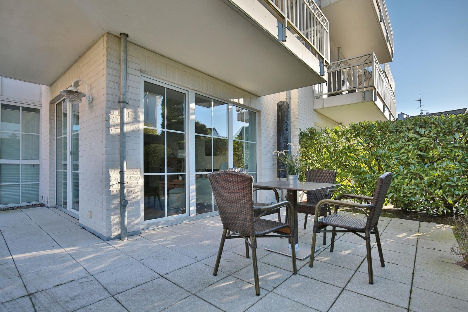 Das Haus Sonnenpark Appartement 3 in Timmendorfer Strand präsentiert sich als modernes 2-Zimmer-Appartement im Erdgeschoss mit einer Wohnfläche von 51 m², ideal für bis zu 2 Personen und ein Baby auf Anfrage. Der offene Wohnbereich verbindet Wohnzimmer und Wohnküche, ausgestattet mit Ceranherd, Backofen, Spülmaschine, Mikrowelle sowie allen notwendigen Küchenutensilien. Die hochwertige Couchgarnitur, Esstisch und Smart-TV bieten zusätzlichen Komfort. Das separate Schlafzimmer verfügt über ein Doppelbett (180x200 cm) und einen Kleiderschrank. Ein modernes Badezimmer mit Dusche, Waschbecken, WC und Fenster ergänzt die Ausstattung. Gemeinschaftliche Einrichtungen wie eine Waschmaschine, Trockner sowie ein abschließbarer Abstellraum für Fahrräder stehen im Keller zur Verfügung. Einen Tiefgaragenstellplatz gibt es ebenfalls. WLAN ist vorhanden, während Haustiere nicht gestattet sind.